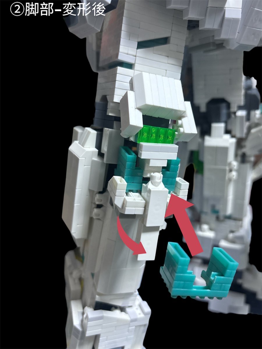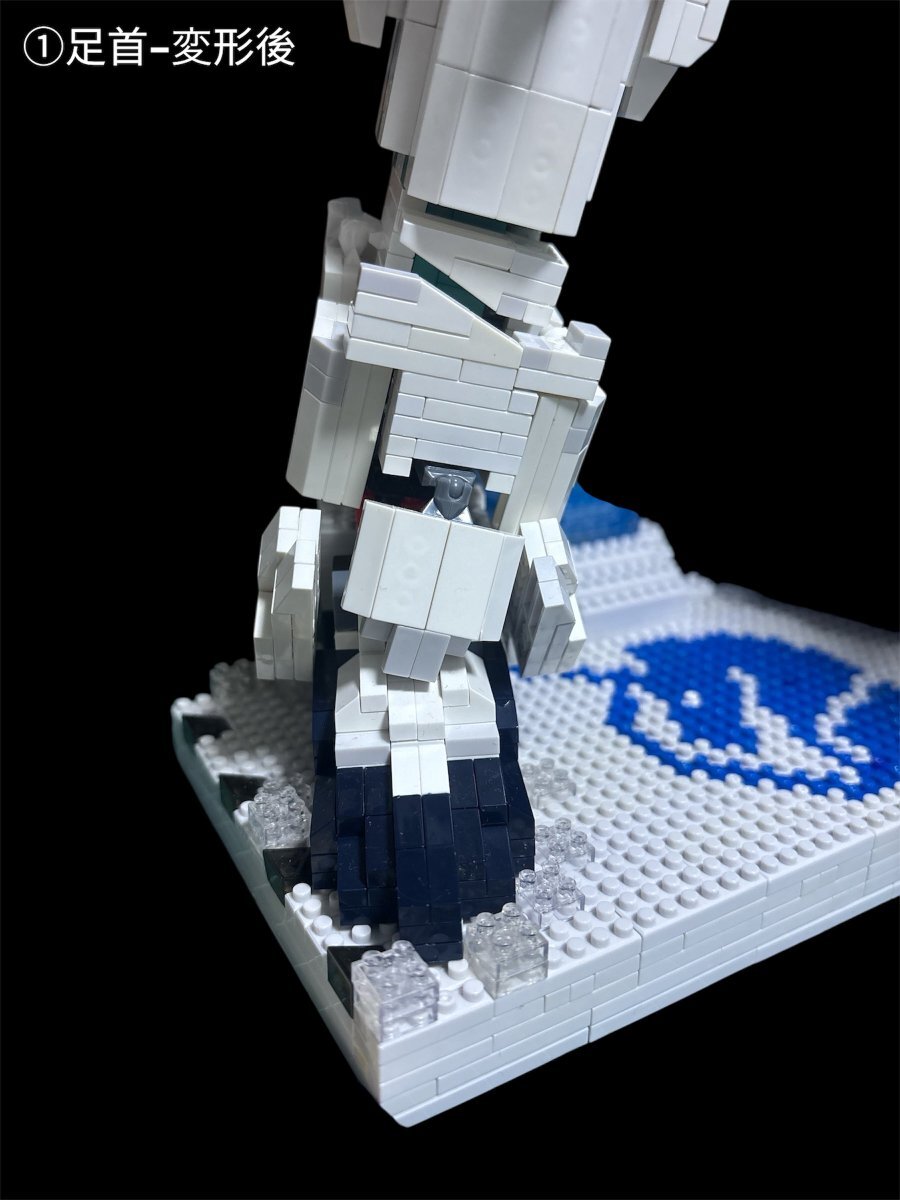 プチブロックで作ろう変形ユニコーンガンダム。色々写真見たいとリクエストいただいたので変形ギミック紹介。 その①足首 くるぶしのアンクルガードを跳ね上げ、スネのアーマーを下げてサイコフレームを露出させます。 #ダイソー #プチブロック #ユニコーンガンダム #完全変形 pic.x.com/IBQ271GiZM