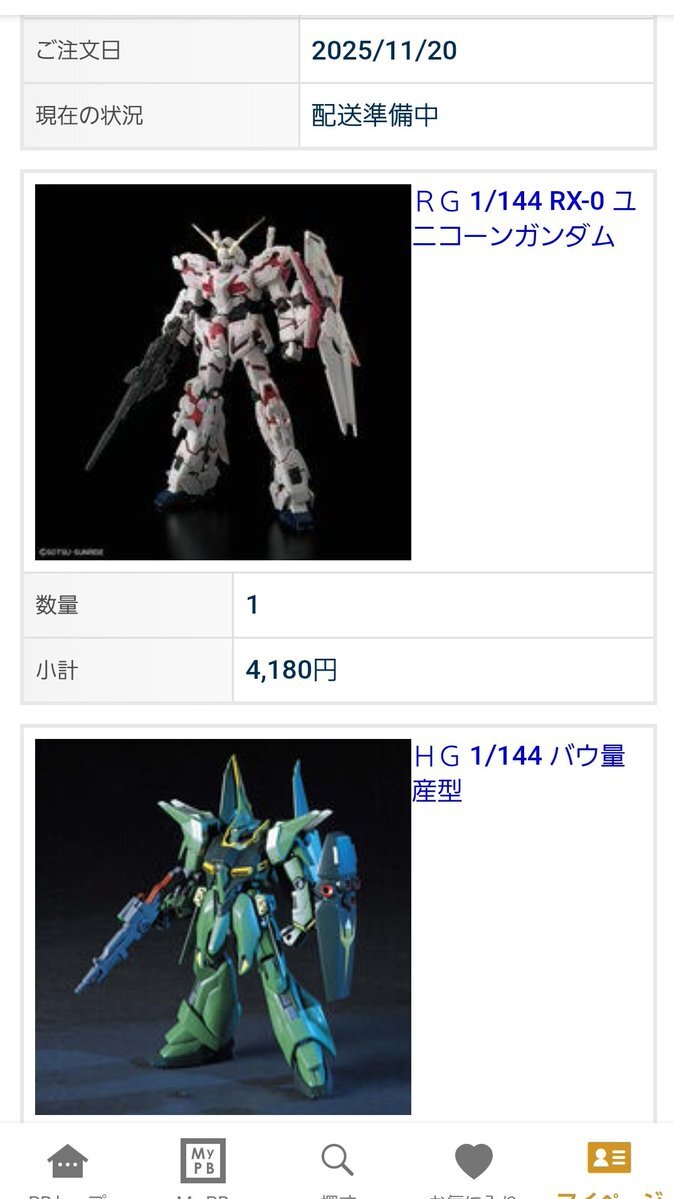 本日のプレバン朝市です。持ってなかったRGユニコーン、次の再販は値上げするみたいなので確保。ついでにカートイン出来たバウもゲット。ユニコーンの値上げ分とポイントで送料相殺?#ガンプラ #ガンプラ再販 #プレバン朝市 #量産型バウ #ユニコーンガンダム pic.x.com/h5hostiwhi