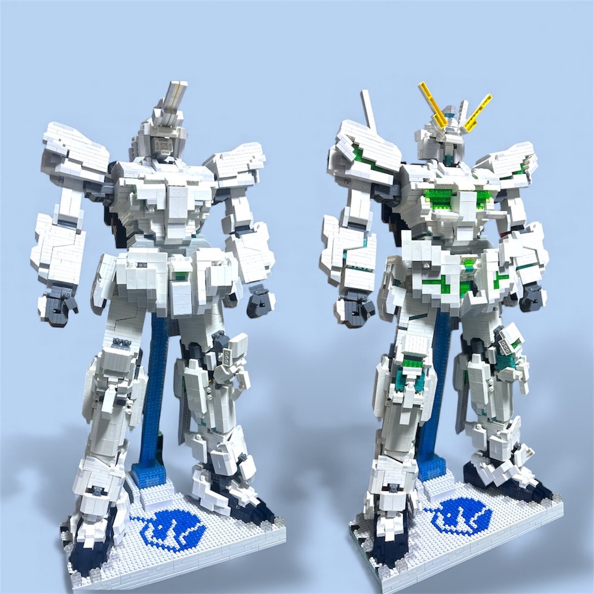 プチブロックで作ろう変形ユニコーンガンダム完成!膝のサイコフレームだけ差し込みますが他は差替え無しで変形します。サイズは結局PGより少しデカい42cm。まぁ飾れるレベルでよかった。 #ダイソー #プチブロック #ユニコーンガンダム #完全変形 pic.x.com/Jp0obqIHuY