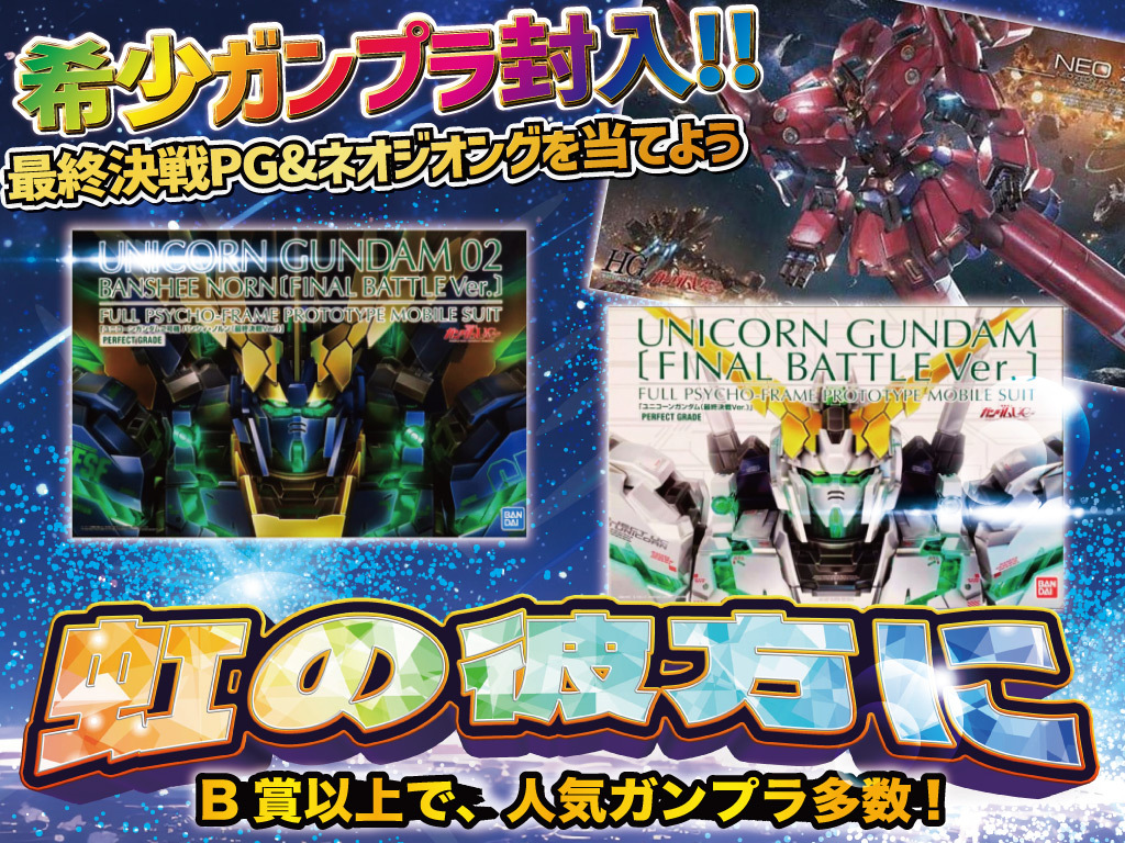 ユニコーン最終決戦ガチャ発売❗️ HGネオジオングS賞に封入😳 さらに、PGユニコーン、バンシィ最終決戦verも🌈 最低保証ガンプラ排出👍 ホビチャンサイトはこちら hobichan.com #ガンプラ #ホビチャン #ネオジオング #ユニコーンガンダム pic.x.com/inDDiwpSHi