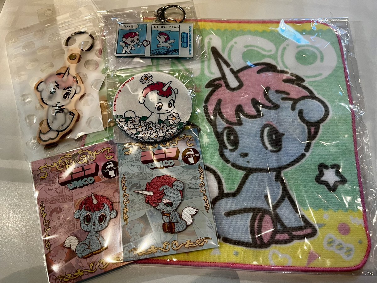ユニコーンの男の子 #ユニコ のグッズ販売中🦄✨ ・ハンドタオル 税込¥880 ・本革キーホルダー 税込¥2,640 ・両面アクリルキーホルダー 税込¥946 ・布製缶バッジ 税込¥660 ・刺繍シールワッペン 税込¥946 日々使いやすいアイテムが多いのでユニコをお手元にいかがですか? #手塚治虫 pic.x.com/5XT2QO7XTJ