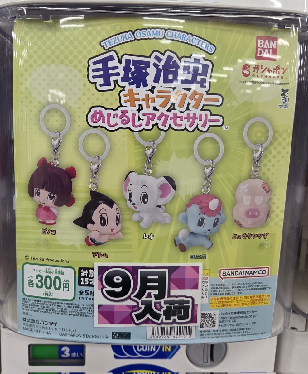 手塚治虫キャラクター めじるしアクセサリー 1回300円 入荷致しました‼️ 是非回しに来てください🎶 #BANDAI #マンガ倉庫 #マンガ倉庫鹿屋店 #ピノコ #アトム #レオ #ユニコ #ヒョウタンツギ フォローよろしくお願いします✨ pic.x.com/MaCqiJmn1I
