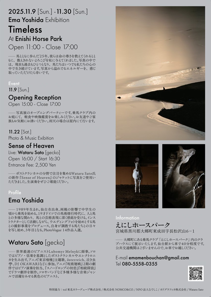 11/9〜11/30までえにしホースパークで馬写真展を開催します。 えにしホースパークのトレーナーとして、写真家として活動しているEMA YOSHIDAの作品です。是非お越しください。 11/9 Opening Reception 11/22 Live #emayoshidaexhibition #写真展 #いろり #ユニコ #大郷町 pic.x.com/X9qiggZHgo