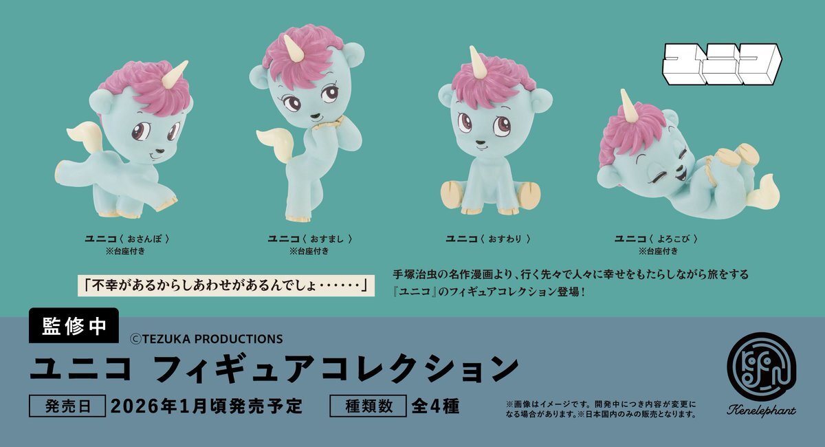 \先行公開/ 2026年1月頃発売予定 「ユニコ フィギュアコレクション」 全4種 ⒸTEZUKA PRODUCTIONS ▼4個パック 予約開始 info.kenelephant.co.jp/4pb5ho9 #手塚治虫 #ユニコ #ケンエレ #カプセルトイ pic.x.com/OtLzUaEqE3