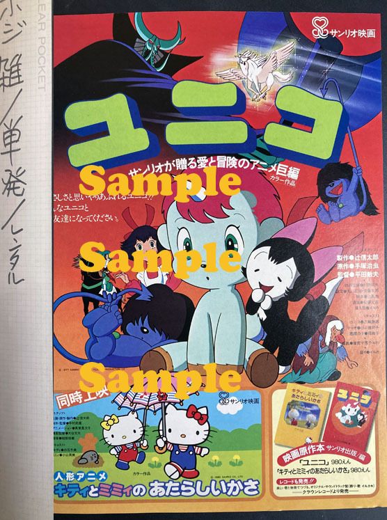 昔、自分が制作した作品を整理していたら、こんなチラシが入っていた。 大切なモノだったのかな。価値がわからんので公開してみた。 #ユニコ #サンリオ #手塚治虫 #辻信太郎 #キティちゃん #ミミィ pic.x.com/trh49zCBAv