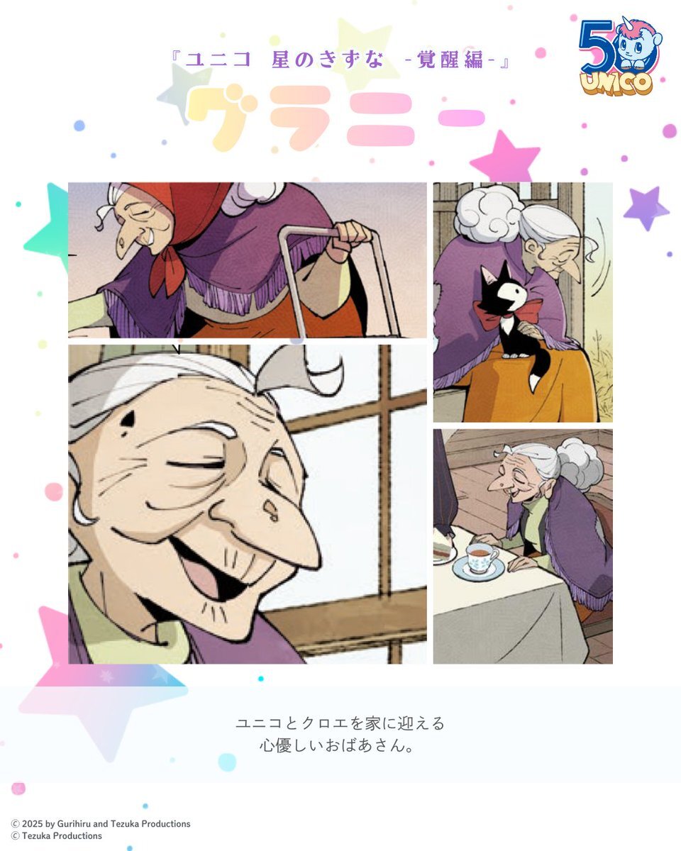 🦄💖『ユニコ 星のきずな -覚醒編-』🦄💖 ˗ˏˋ キャラクター紹介ˎˊ˗ 💫グラニー ユニコとクロエを家に迎える優しいおばあさん #ユニコ #ユニコ50周年 pic.x.com/Gn5nhpk1sg