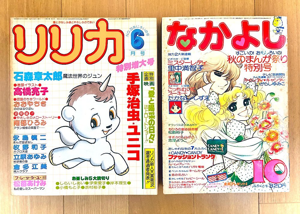 返信先:@punnyago不思議なサイズですよね。 原稿描くのが大変そう。 せっかくなんで リリカとなかよし比べてみました😆 #ユニコ #キャンディキャンディ pic.x.com/ZCW9vLply0