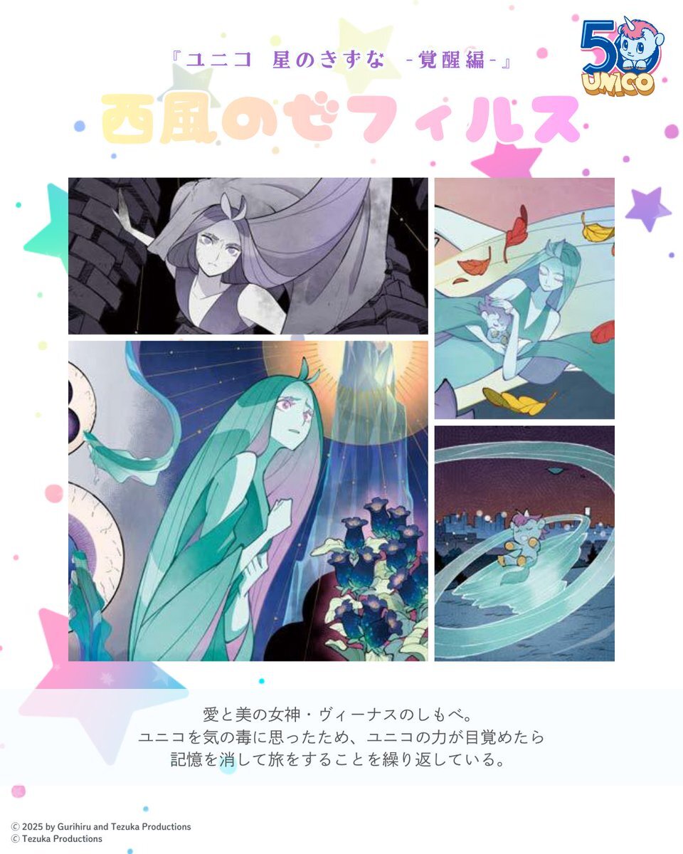 🦄💖『ユニコ 星のきずな -覚醒編-』🦄💖 ˗ˏˋ キャラクター紹介ˎˊ˗ 💫西風のゼフィルス ヴィーナスのしもべだがユニコを守る #ユニコ #ユニコ50周年 pic.x.com/QsrNdMISis