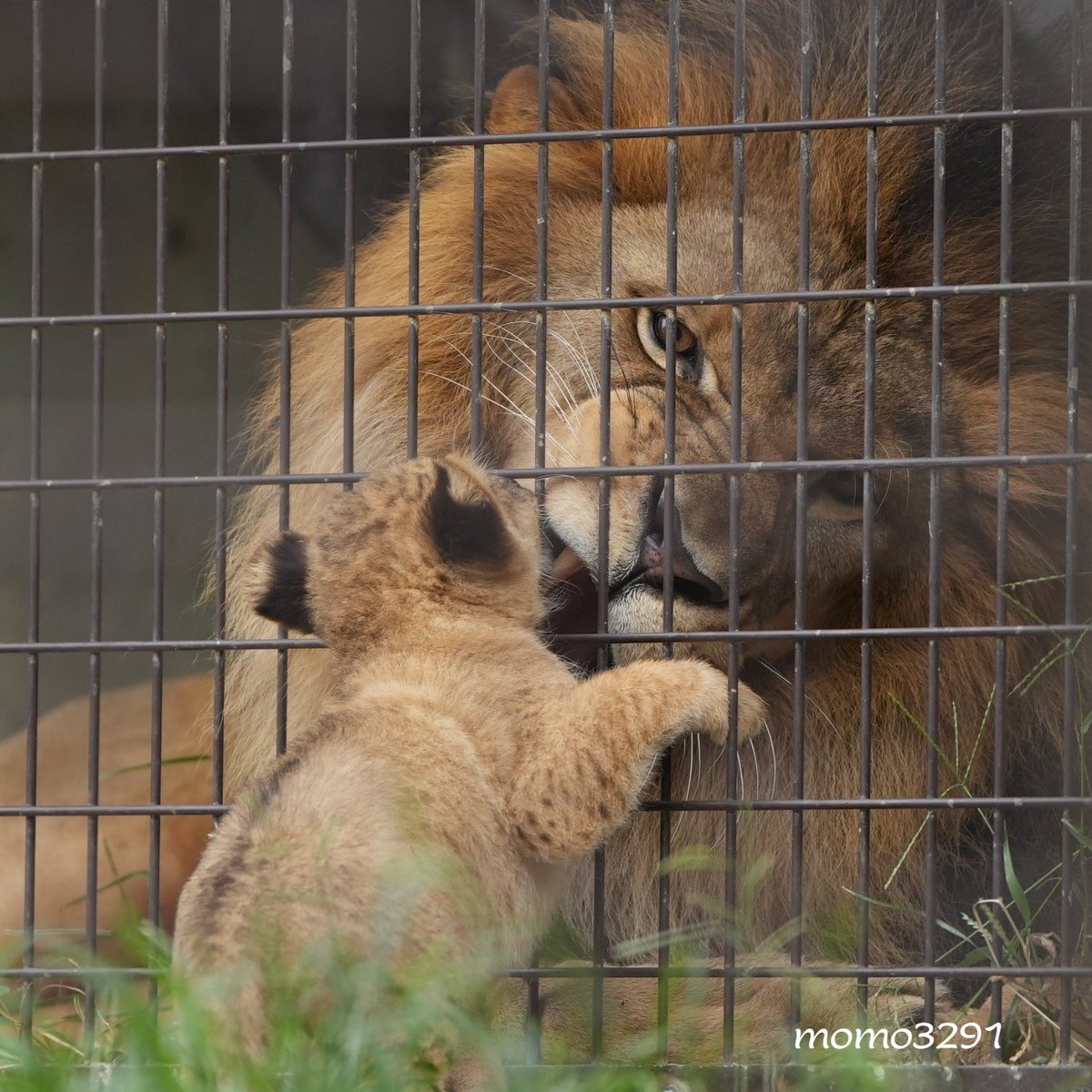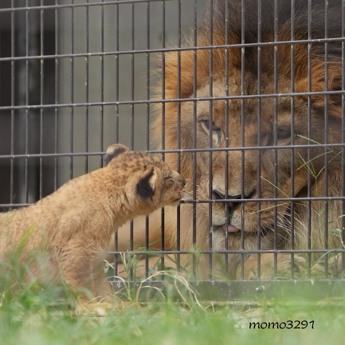 アースパパと赤ちゃん♂ 2枚目、パパの牙が赤ちゃんの頬に当たっているけど、 赤ちゃんは全く怖がっていません😊 #のんほいパーク #豊橋 #ライオン #ライオンの赤ちゃん #三つ子 #アースとシルクの仔 pic.x.com/T6SGaOHQgZ
