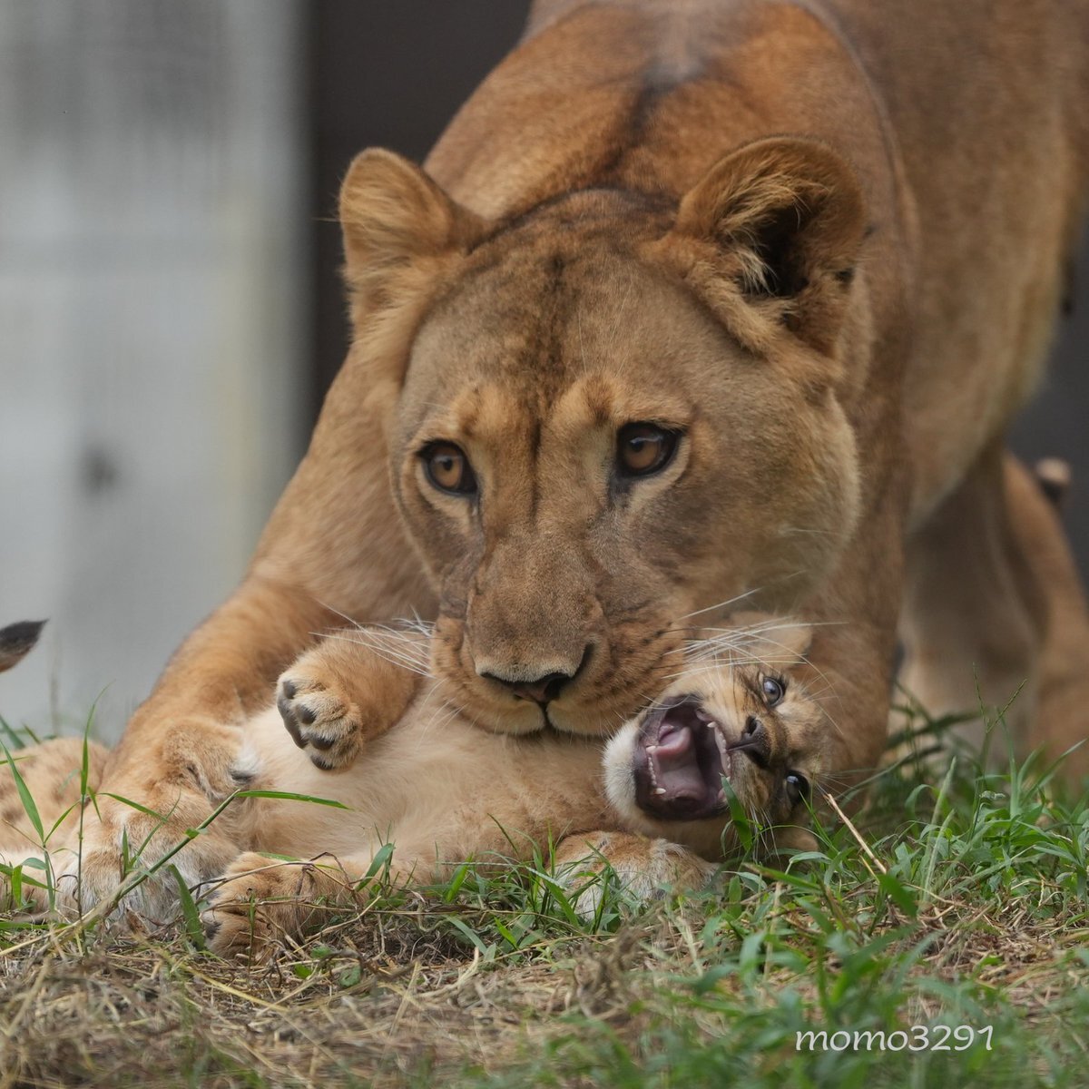 シルクママと赤ちゃん🦁 スリスリ寄って来る時もあれば ママに捕まる時もあります😄 #のんほいパーク #豊橋 #ライオン #ライオンの赤ちゃん #三つ子 #アースとシルクの仔 pic.x.com/umLQxd6ozY