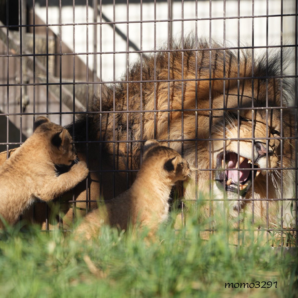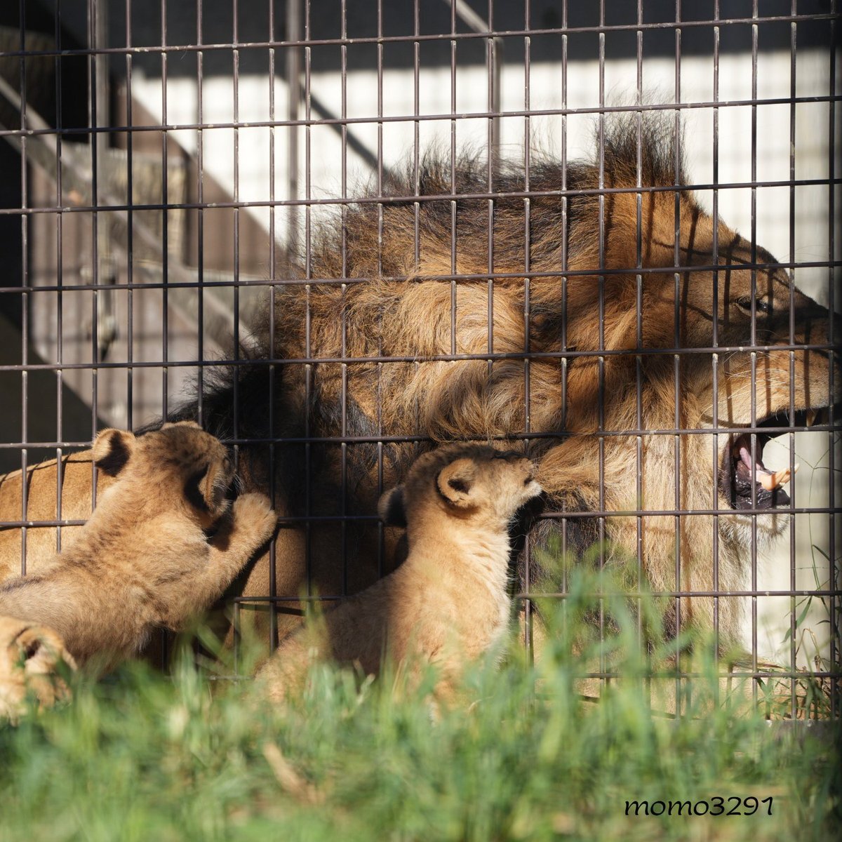 アースと赤ちゃん🦁 アースパパの鬣が息子2頭の 餌食になっていました😅 怒ったふりはするものの 本気で怒らないパパ 偉いぞ!アース👍 #のんほいパーク #豊橋 #ライオン #lion #アース #ライオンの赤ちゃん pic.x.com/5IYGBsRHTX