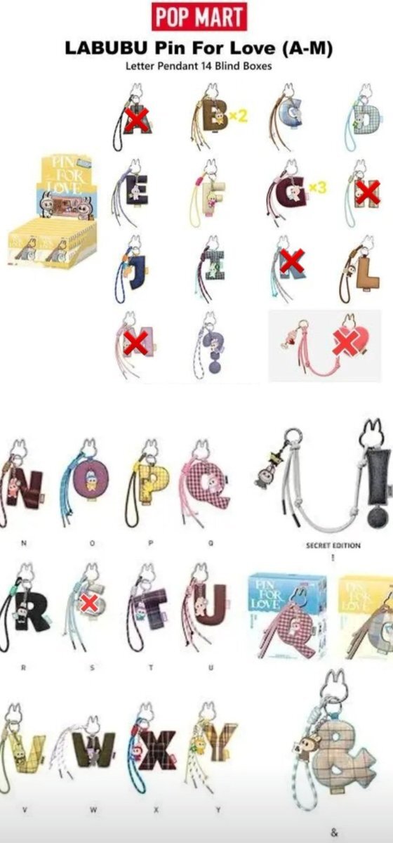 ラブブ LABUBU PIN FOR LOVE ぬいぐるみペンダント アルファベットラブブ イニシャル 交換 譲 : 画像1 ※ALT 求 : 画像2(R>DADA>A>SISI)、画像3 公式オンラインで購入したため最遅出荷で 11/30になるためお時間いただきます。 購入証明提示可能。 #ラブブ #ラブブ交換 #POPMART交換 pic.x.com/NDyvKnFhG4