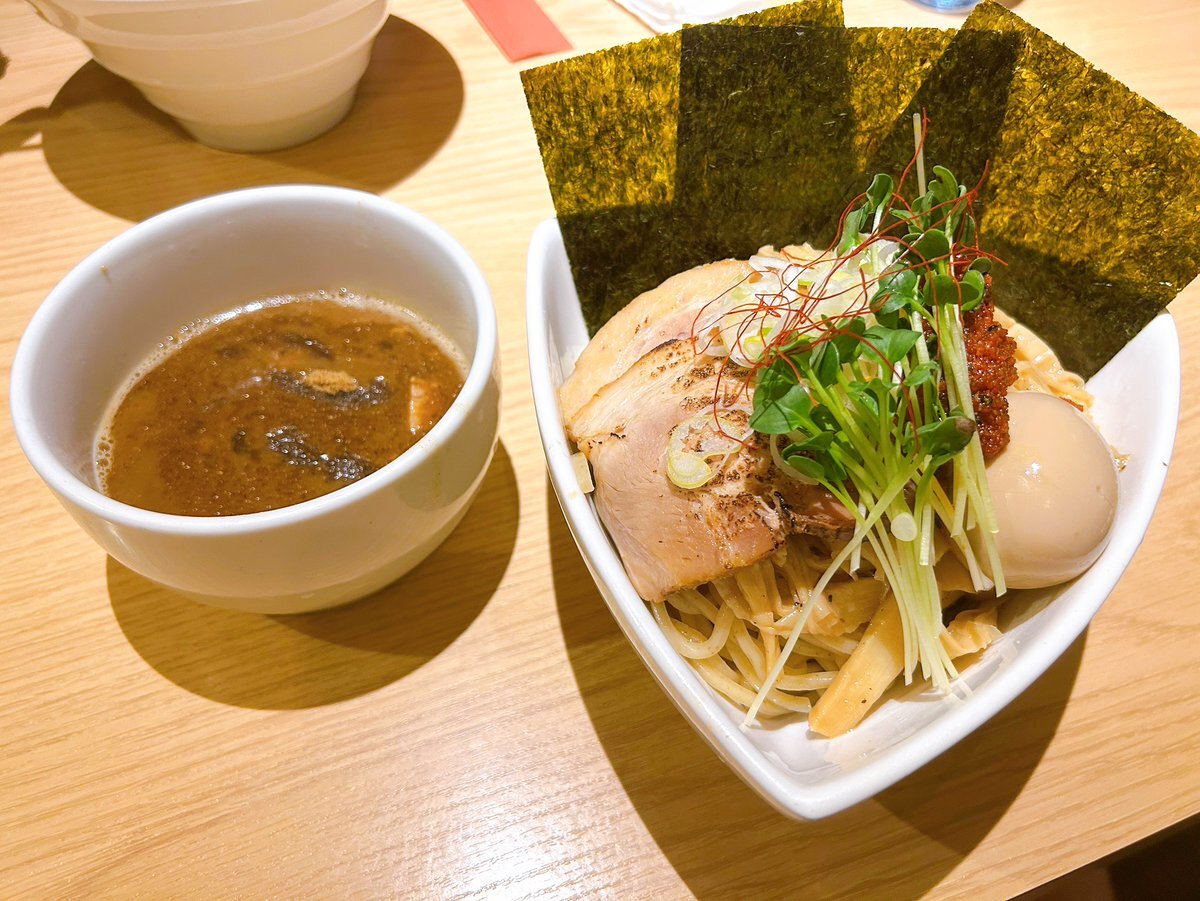 池袋西口「麺堂にしき」🍜 ラーメン全品売り切れで昆布水つけめん注文。自販機は使いづらく、水のセルフも分かりにくいのは正直マイナス…。つけめんは昆布水のとろみが面白く、細麺は好み。これを“旨い”と感じるか“薄い”と感じるかは人によるかも。 次はラーメンを食べて判断したい。 #ラーメン巡り