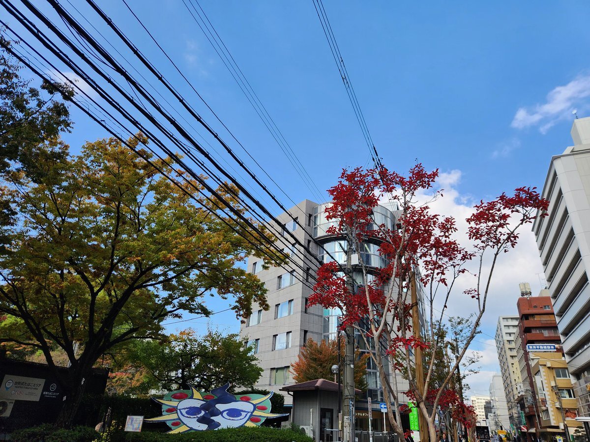 お昼休みにて🍱リベンジ ※1つ目のポストと同じものですが、何故か写真がアウトだったもので😅 #紅葉 🍁 #岡本太郎 #リオちゃん #大阪 #豊津公園 pic.x.com/ZDGbhCPm3I x.com/KitazeCrocus/s…