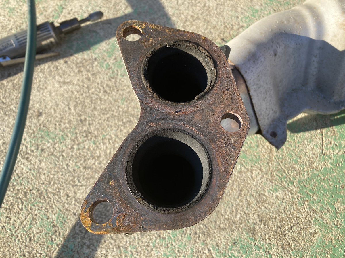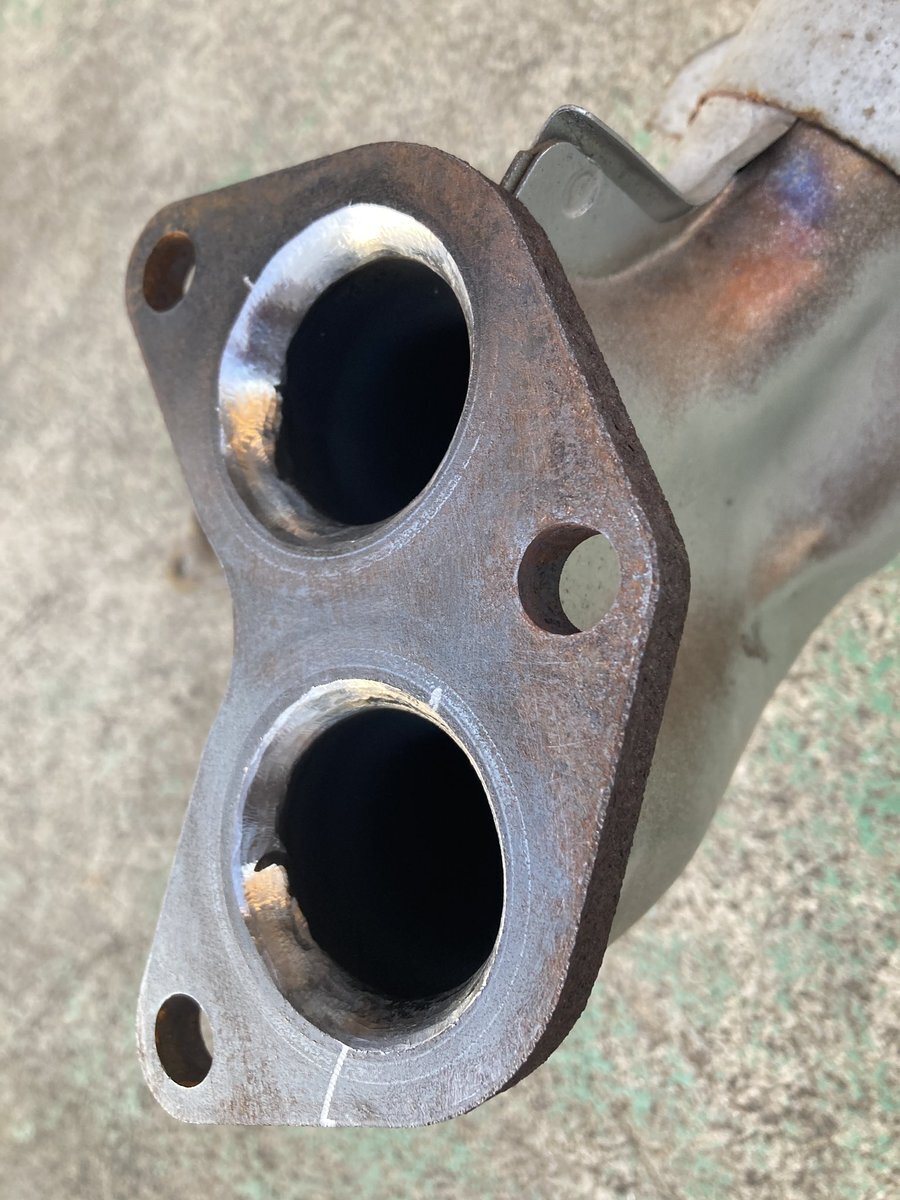 今の純マニが、遮熱板錆び錆びなのでオクで綺麗なやつを買ってきた。 そのまま交換は芸がないな〜と思って徐にポートを削り始めるアホがここにいます #BL5 #レガシィ #エキマニ加工 pic.x.com/XBqMJIR68W