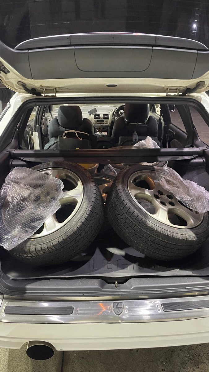 レガシィツーリングワゴン(BP5) 運転席・助手席除いて何本タイヤ(ホイール付き)積めますか!! インチ・タイヤサイズによると思うけど。 #BP5 #レガシィ #レガシィツーリングワゴン #タイヤ運搬 #何本積めるか選手権 #教えてください #RTで有識者へ届け