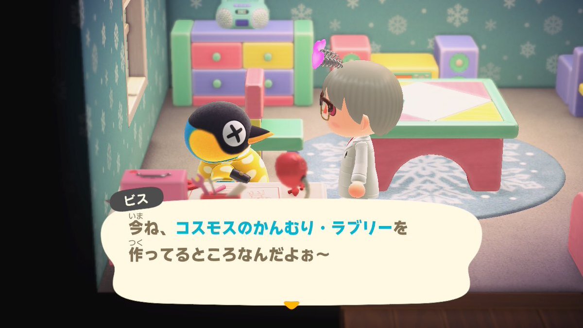 あつ森タイム! バーバラが『キクのリース』をつくっています💐 レシピ欲しい方どうぞ😊🔨(配布用OK) パス【9BJLH】です ※追い抜き禁止、順番守ってね ※住民レシピのみ、その他散策等NG #あつ森 #あつ森無償の輪 #花レシピ #レシピ配布