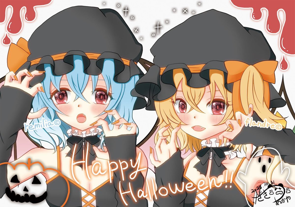 ふたりでハロウィンプリクラ撮ってきたんだって〜🎃🍭💕 #Halloween #東方Project #レミフラ #レミリア・スカーレット #フランドール・スカーレット pic.x.com/Y5QI1iw2ez