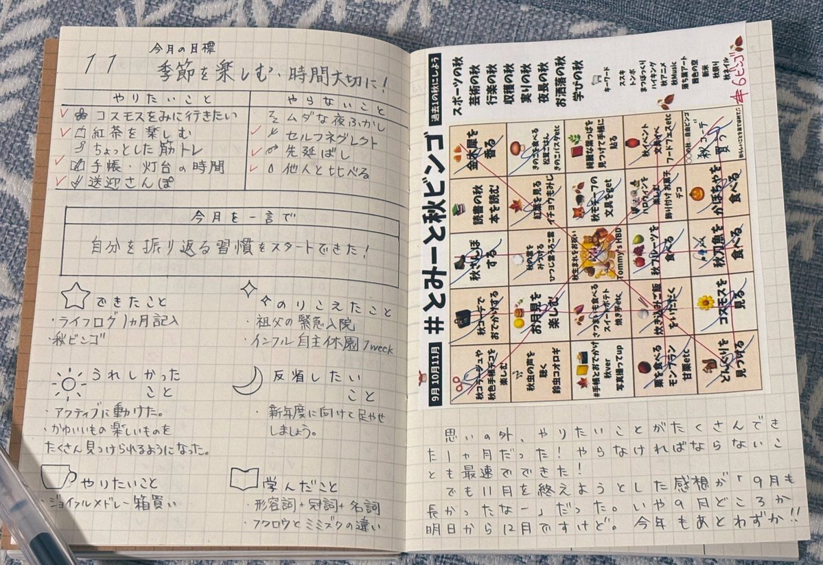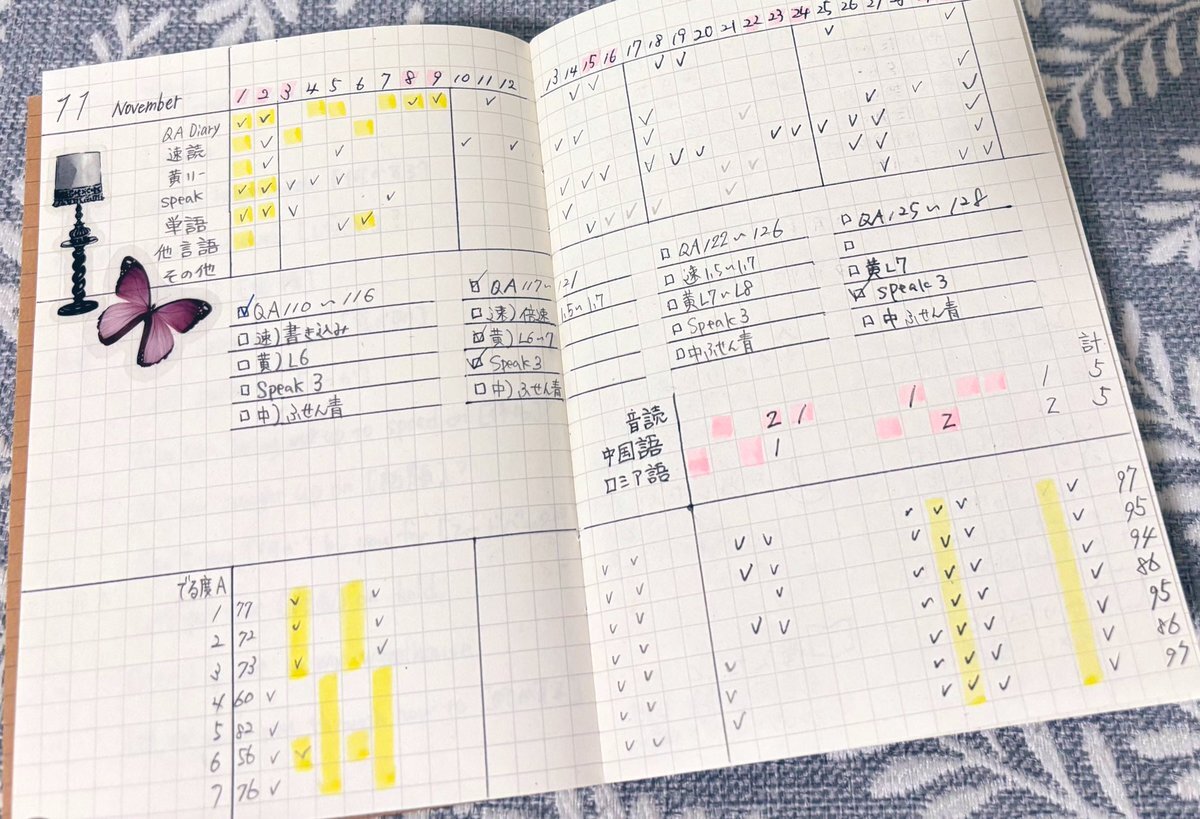 #Komilogue Nov29.30 #とみちょぷりんと #ライフログ #手帳 #英語学習 #英語 #ロシア語 #中国語 今月やりきったー! ライフログはじめて丸1ヶ月達成!😆👏 英単語は出る度A65.7%→92.9%まで伸びた💮 12月もがんばろ〜 pic.x.com/Rh8d8IqiRJ