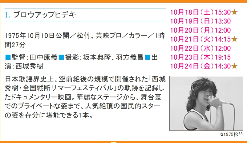 日本歌謡界史上💥空前絶後の規模で開催された 「#西城秀樹 全国縦断サマーフェスティバル」 【🚁ブロウアップヒデキ(1975年)】 ⏰10月18日(土)~24日(金)⭐️応援上映日あり 🚇神保町シアター(東京) 💰一般1400円、シニア1200円、学生1000円 👉shogakukan.co.jp/jinbocho-theat… #歌謡曲 #ロック pic.x.com/znyQz3xzoX x.com/jinbocho123/st…