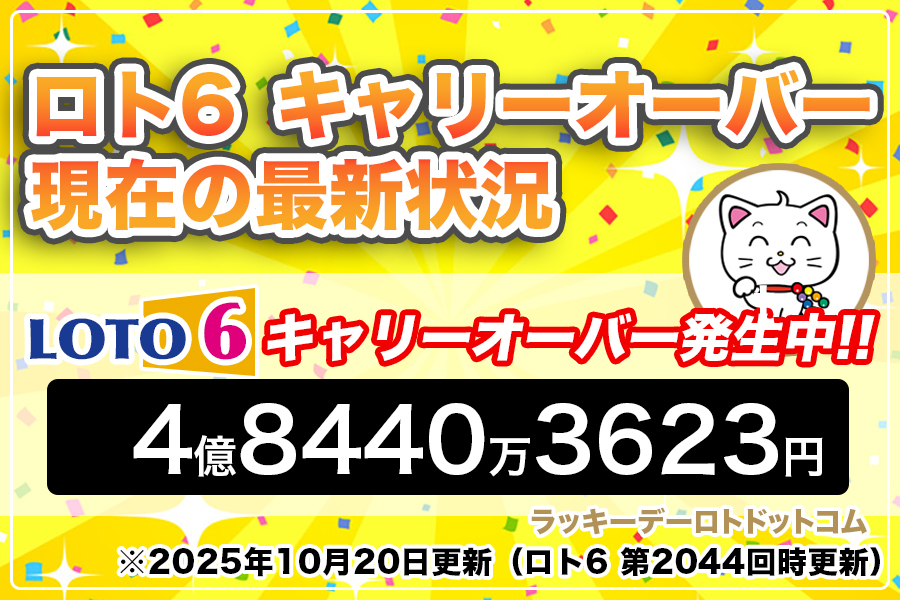 こんばんにゃん🐾 本日10月20日(月)に #ロト6 の抽選結果が出たにゃ😸🔴🔵 こちらのページで速報で抽選結果の当選番号もお知らせ中にゃ luckydayloto.com/loto6/newsflas… 次回予想に役立つデータも紹介してるにゃ😽✌ #ロト6速報 #ロト6当選番号速報