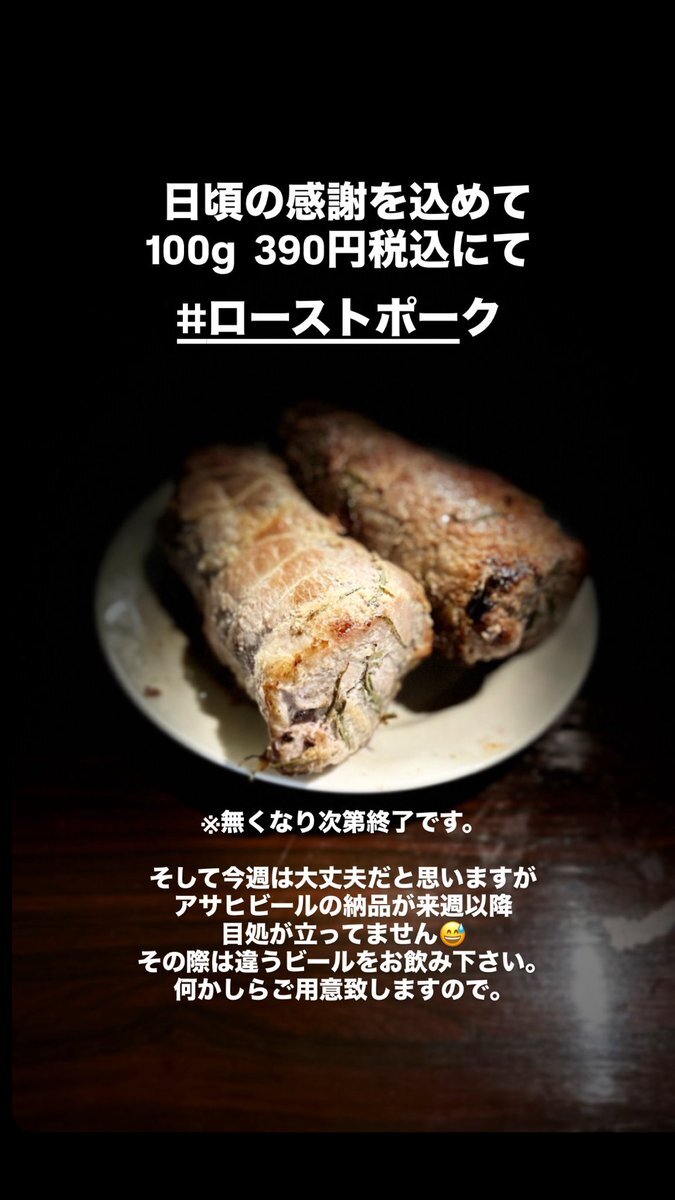 昨日は前半戦は初めてのお客様が多く沢山お話しし 後半戦はいつものメンバーが次回の飲み会計画で盛り上がる 楽しい営業でした、ありがとうございます♪ そして唐突にですが アコが今までの感謝を込めて #ローストポーク を感謝価格提供したいと。 無くなり次第終了ですが、お時間ありましたら是非! pic.x.com/Bom8lCQXQa
