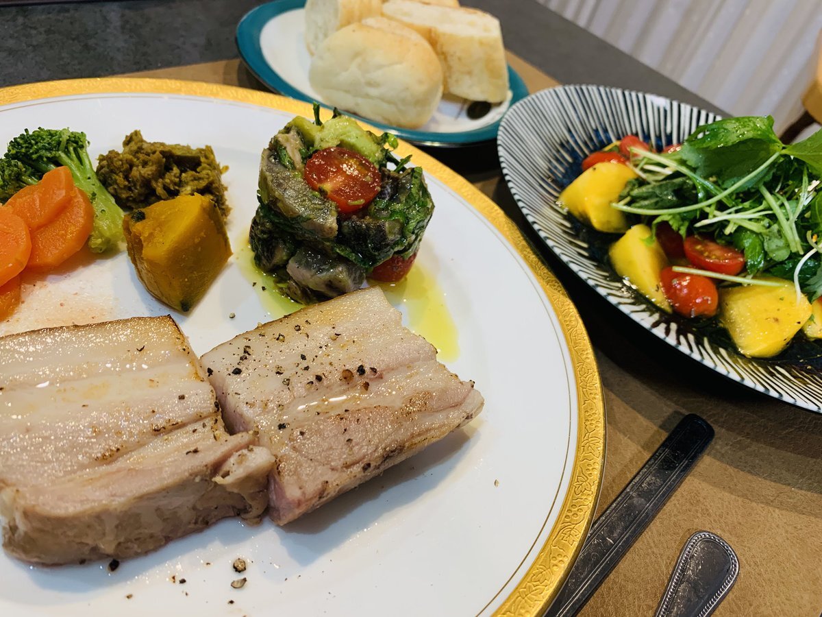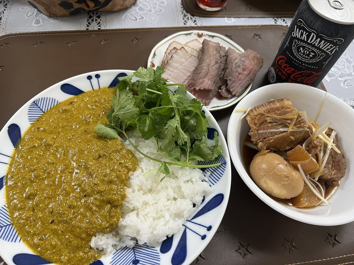 今日の夕ご飯♪ 息子さんが作ったパラックパニールに豚の角煮、そしてローストビーフにローストポーク… 夜のランニングもサボったので今日はチートデーって事で🤭 #夕御飯 #dinner #晩御飯 #パラックパニール #ローストビーフ #ローストポーク pic.x.com/wVVTP4xLwR