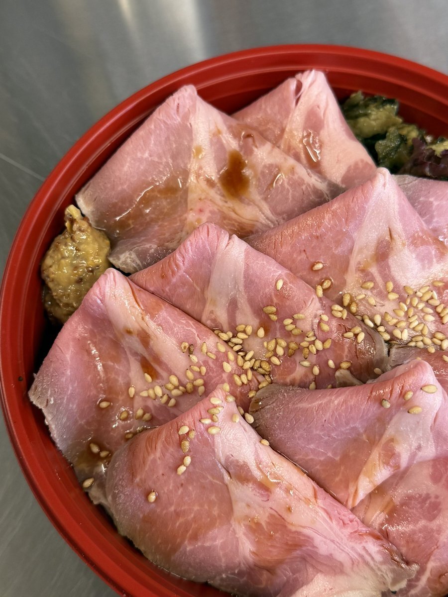 2025.10.9(木)-② ◎#ローストポーク (100g 500円) 埼玉県産 地豚肩ロース🐷 こちらも同じく、 100gより薄くお切りします👍 →「ローストポーク丼」(700円)✨ お弁当メニュー、色々あります🙌 #荒幡肉店 #食卓に幸せを pic.x.com/iWIHGY4XUh