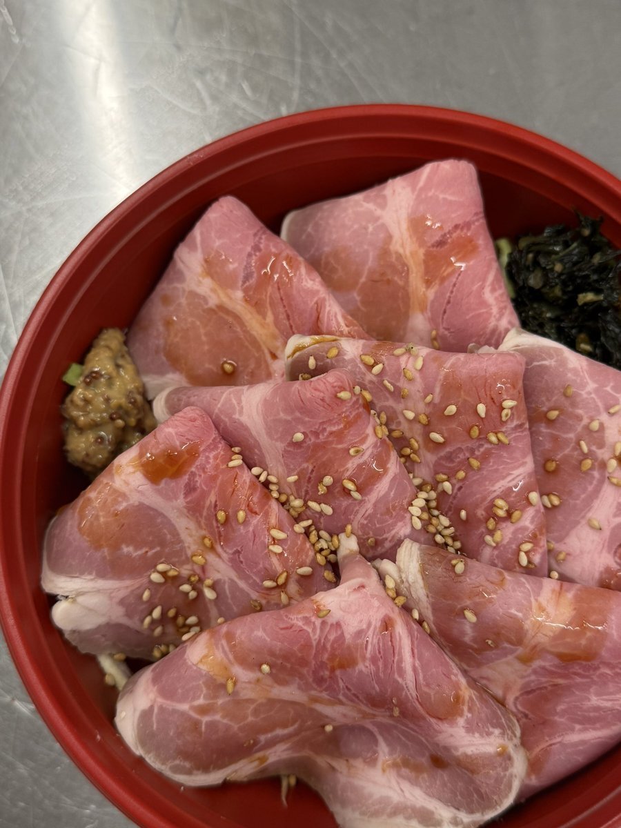 2025.11.10(月)-① ◎#ローストポーク (100g 500円) 御注文でスライス致します👍 お気軽にお声掛けください! →「ローストポーク丼」(700円)✨ ローストビーフ丼に負けじと人気の 丼ぶり弁当です🥹✌️ #荒幡肉店 #食卓に幸せを pic.x.com/ZTDniuyuh4