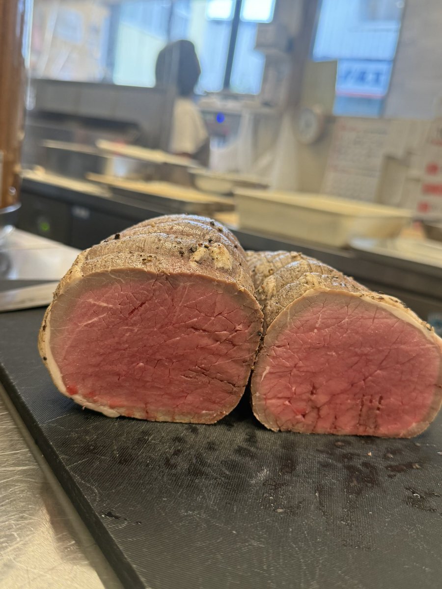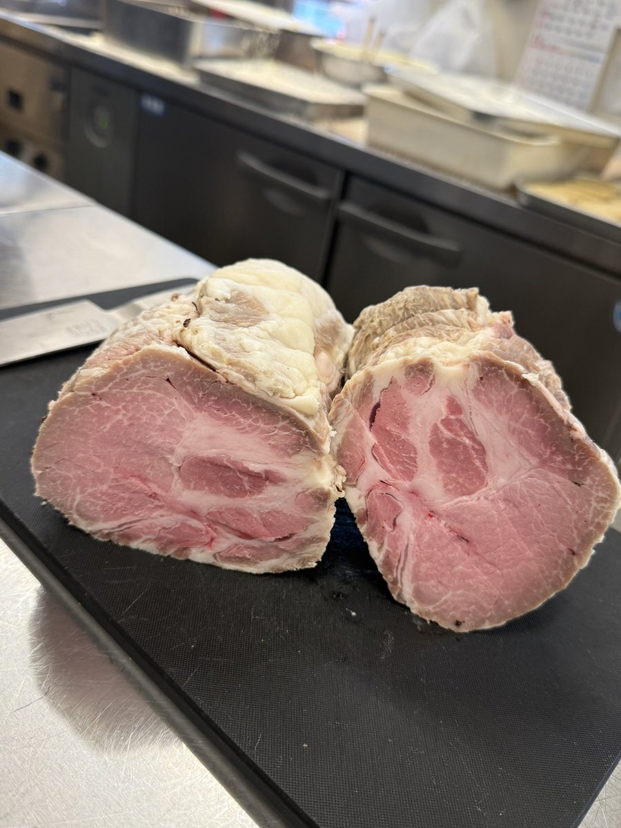2025.10.16(木)-① ◎#ローストポーク (100g 500円) 埼玉県産 地豚肩ロース🐷 100gより薄くお切りします👍 お気軽にお声掛けください! \お待たせしました😆/ お祭り明け、一発目になります✨ →「ローストポーク丼」(700円)✌️ ローストビーフ丼に次いで人気〜😊 #荒幡肉店 #食卓に幸せを pic.x.com/6BC1bh9bSk