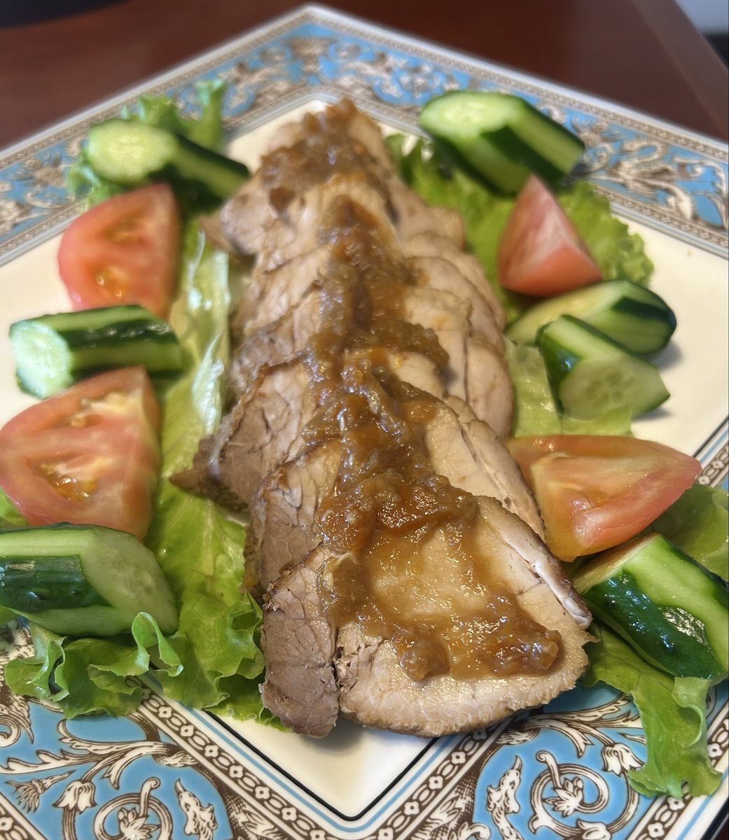 朝仕込んでおいたローストポーク完成ヽ(´∀`≡´∀`)ノ #ローストポーク #低温調理 #低温調理器 pic.x.com/VSjnqt8qQd x.com/masanimasaaki/…