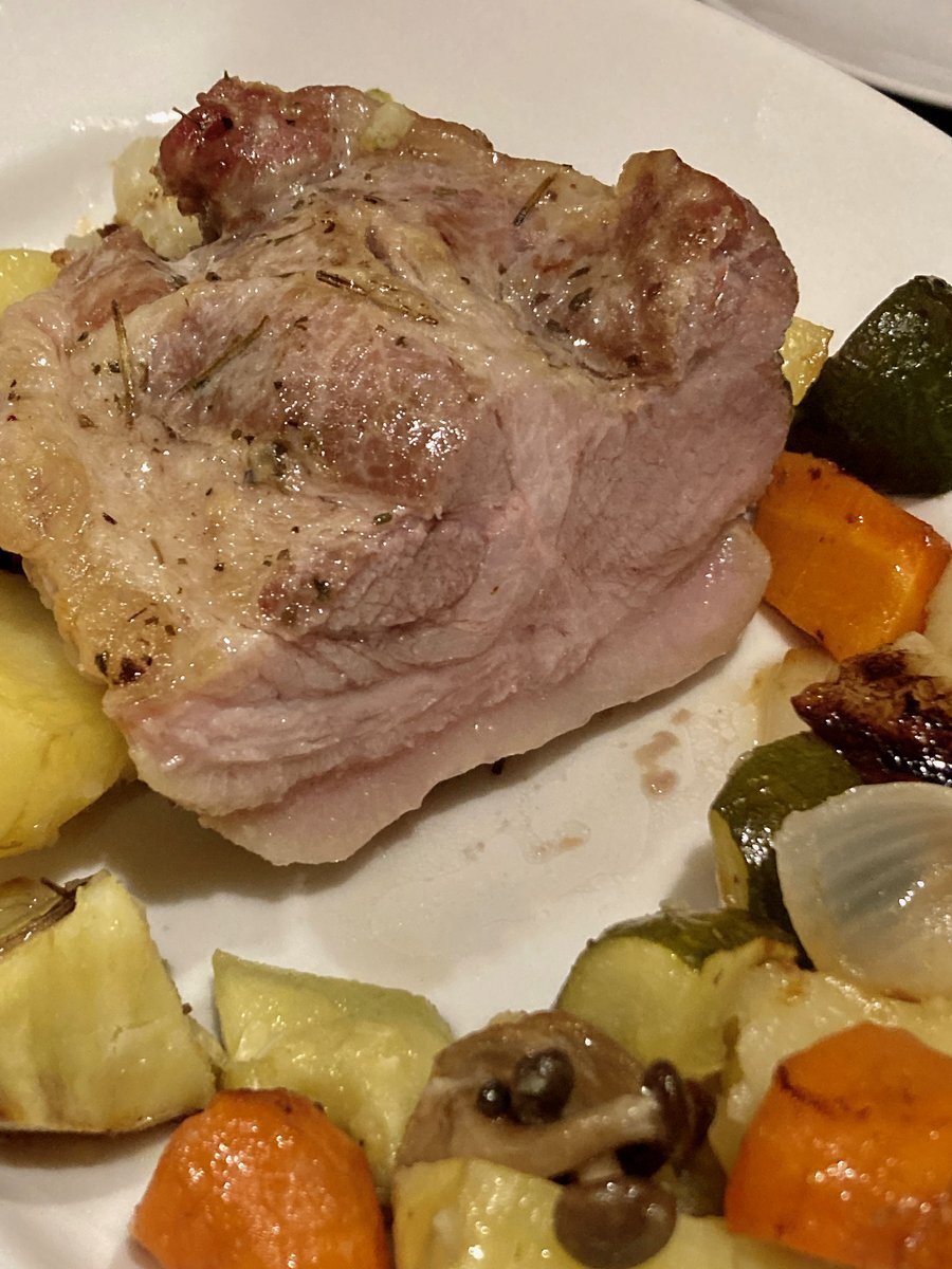 wife..丑三つ時にコツコツとローストポークを作り始めてた。 豚塊肉を塩揉みして三日間ハーブ漬け、野菜と共にダッチオーブンでじっくり焼き上げた。 お~~良い感じのロゼ感👍 肉感もバッチリで美味しい😋 ワインが進むね~~🍷 #ローストポーク #ダッジオーブン #wifeご飯 pic.x.com/0gc8UCui8R