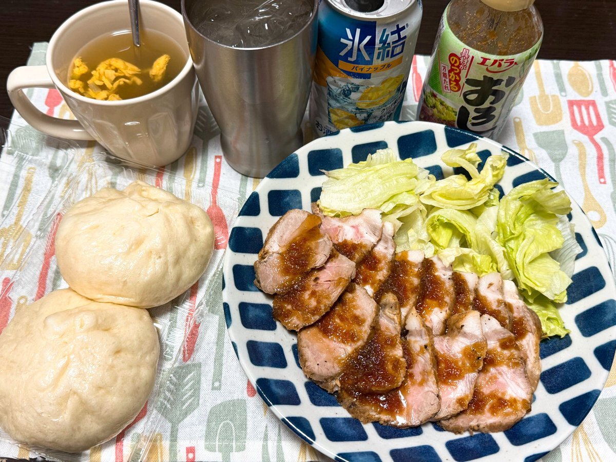 ローストポーク作ってみた ビーフで作ればもちろん美味しいけどポークもなかなかの味わい(゚∀゚) 肉まんは鶴屋の地下で買った! #晩ごはん #晩酌 #ローストポーク #肉まん pic.x.com/868Odh6pd0