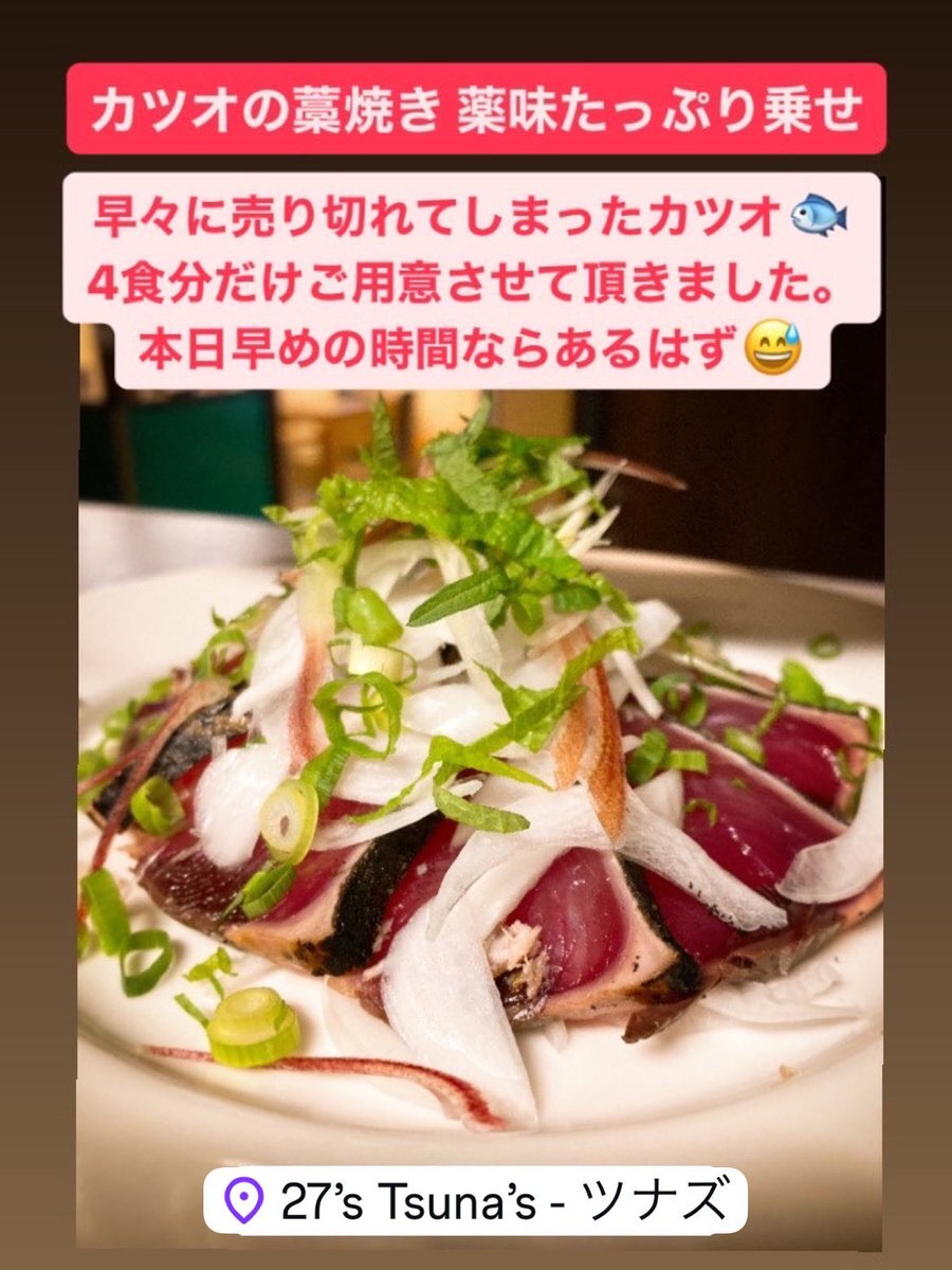 昨日もご来店ありがとうございました! 唐突な感謝イベント割と早めに完売してしまいました! また何かやりたいと思ってます、snsを是非チェックしてお待ちください😁 #ローストポーク さ、最近少しだけ扱ってる魚さん。 #カツオのタタキ 薬味をたっぷり乗せてポン酢で。 半分ほどお席空いてます pic.x.com/AyrktKoiDs