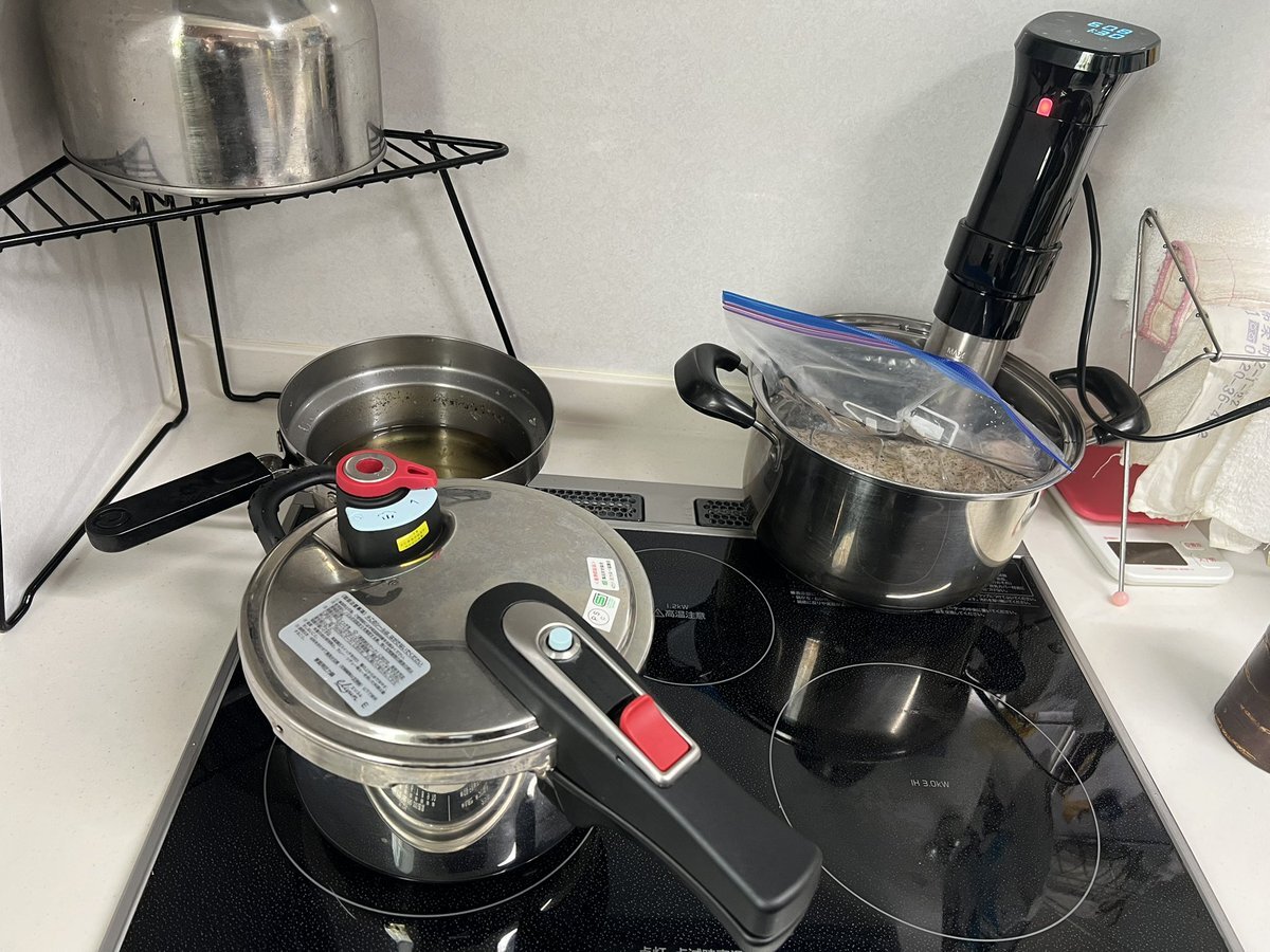 息子さんのカレーには肉は入れないとの事で寂しいからローストポークとローストビーフ仕込んでます🤭 そして更に今回は… #ローストポーク #ローストビーフ #低温調理 #低温調理器 pic.x.com/hhlBjAUIek