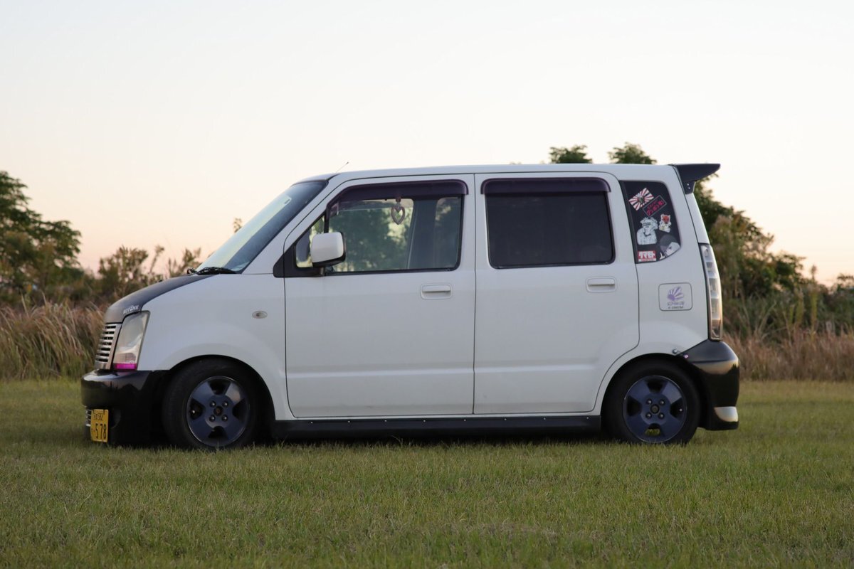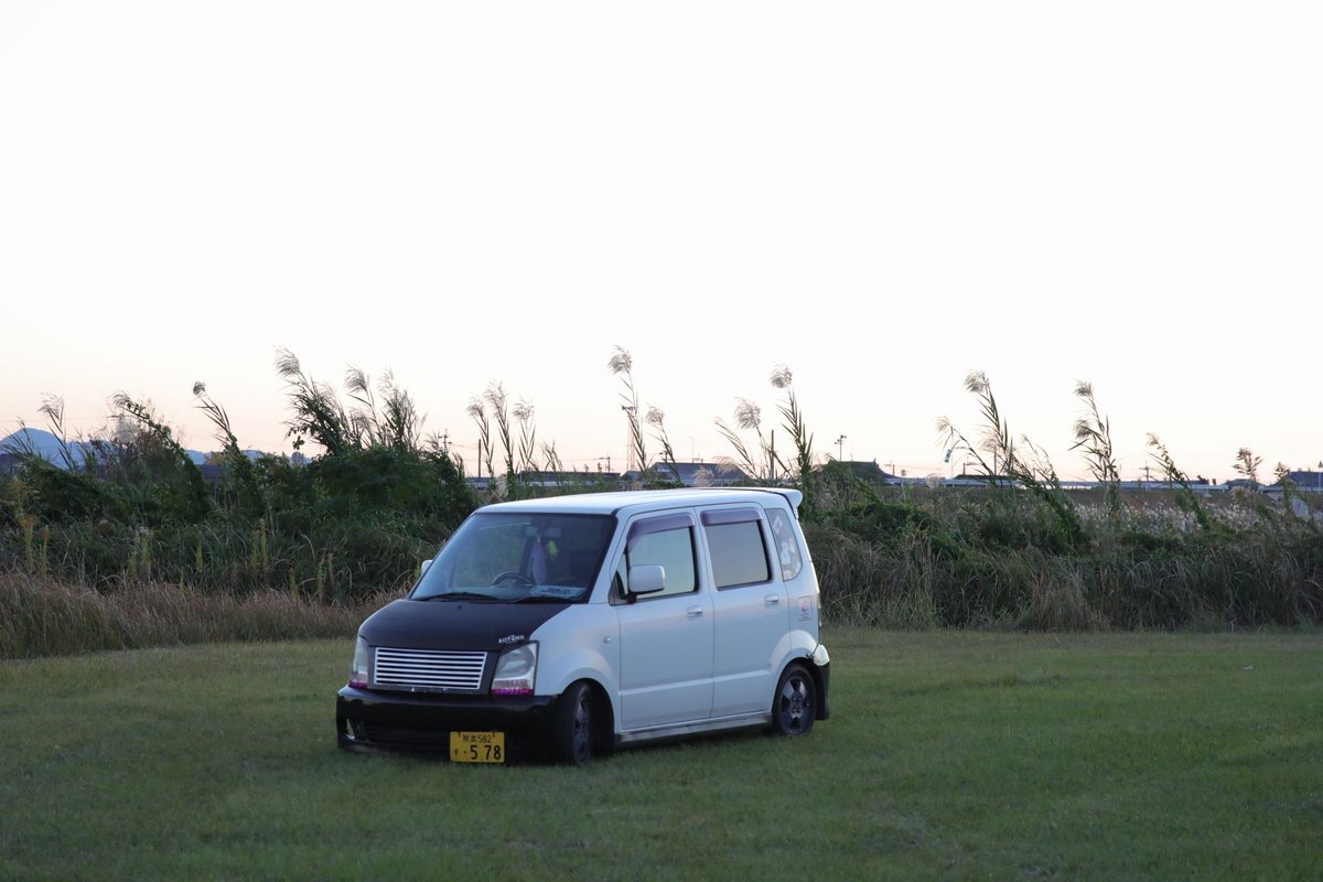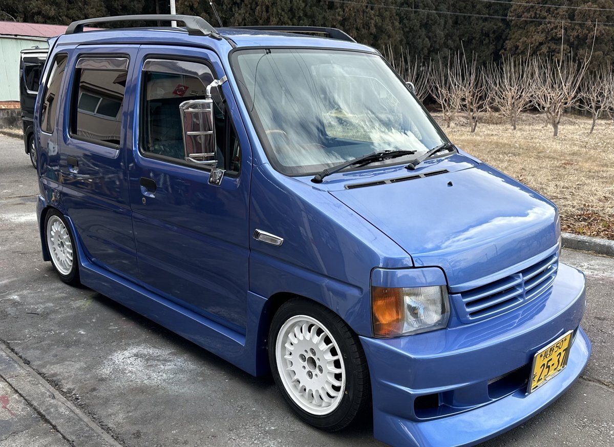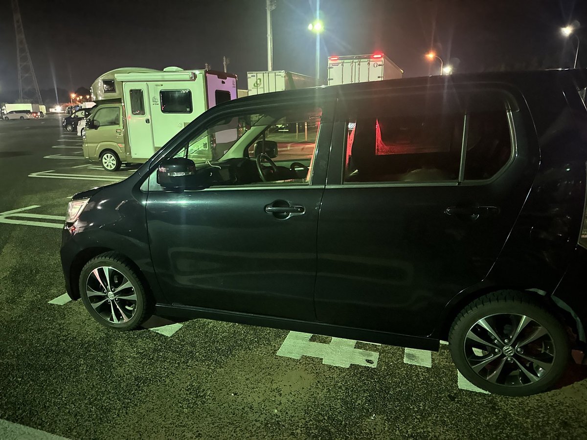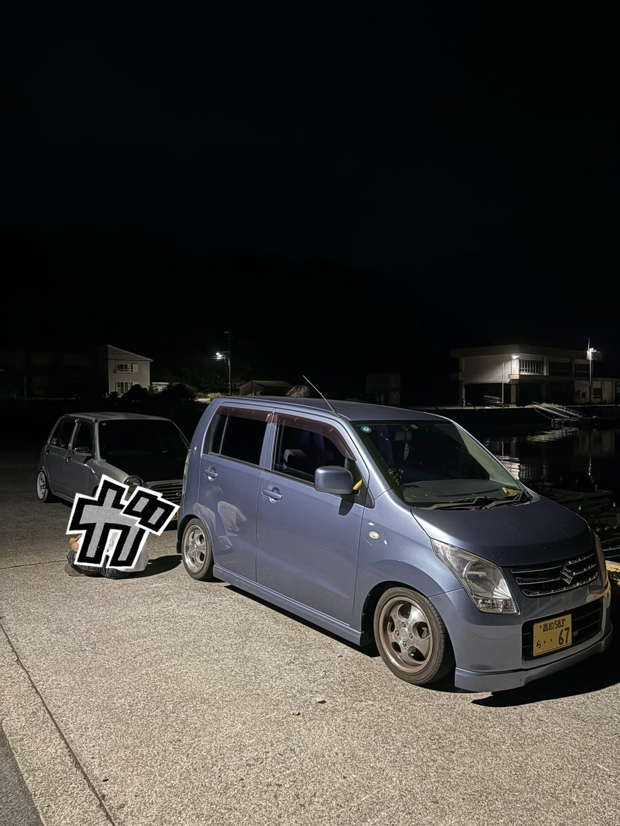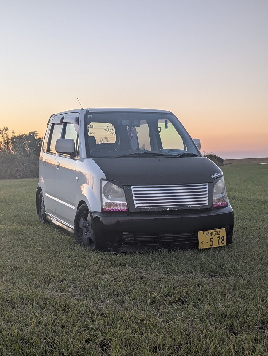 前に乗ってたワゴンR。 電動ファンが壊れてエアコンが効かなくなりnoneRS(MT)に乗り換え、納車まで乗ってて渋滞でオーバーヒートしかけてヤバかったので、アマゾンでモーター買って、駐輪場でジャキアップしずに交換。 2013年(平成25年)式12万キロ走行。