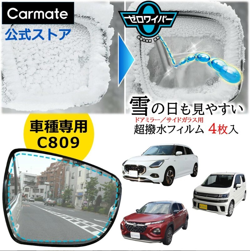 超撥水フィルム C809 ゼロワイパー フィルムタイプ 車種専用 09 超撥水 ドアミラー用 2枚 サイドガラス用2枚 アルト スイフト ワゴンR 詳しくはこちら item.rakuten.co.jp/carmate/c809/ #アルト #スイフト #ワゴンR pic.x.com/5Q6Xft2E0L