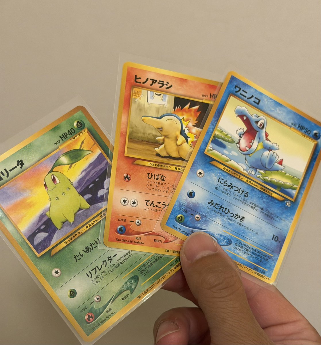 フリマで買ったこの子らめちゃ美品で感動してます🥹 大事にされてたカード引き継がせいただきます! #PokemonCards #OldBackPokemon #ワールドホビーフェア #チコリータ #ヒノアラシ #ワニノコ pic.x.com/gyGqaKuyUU