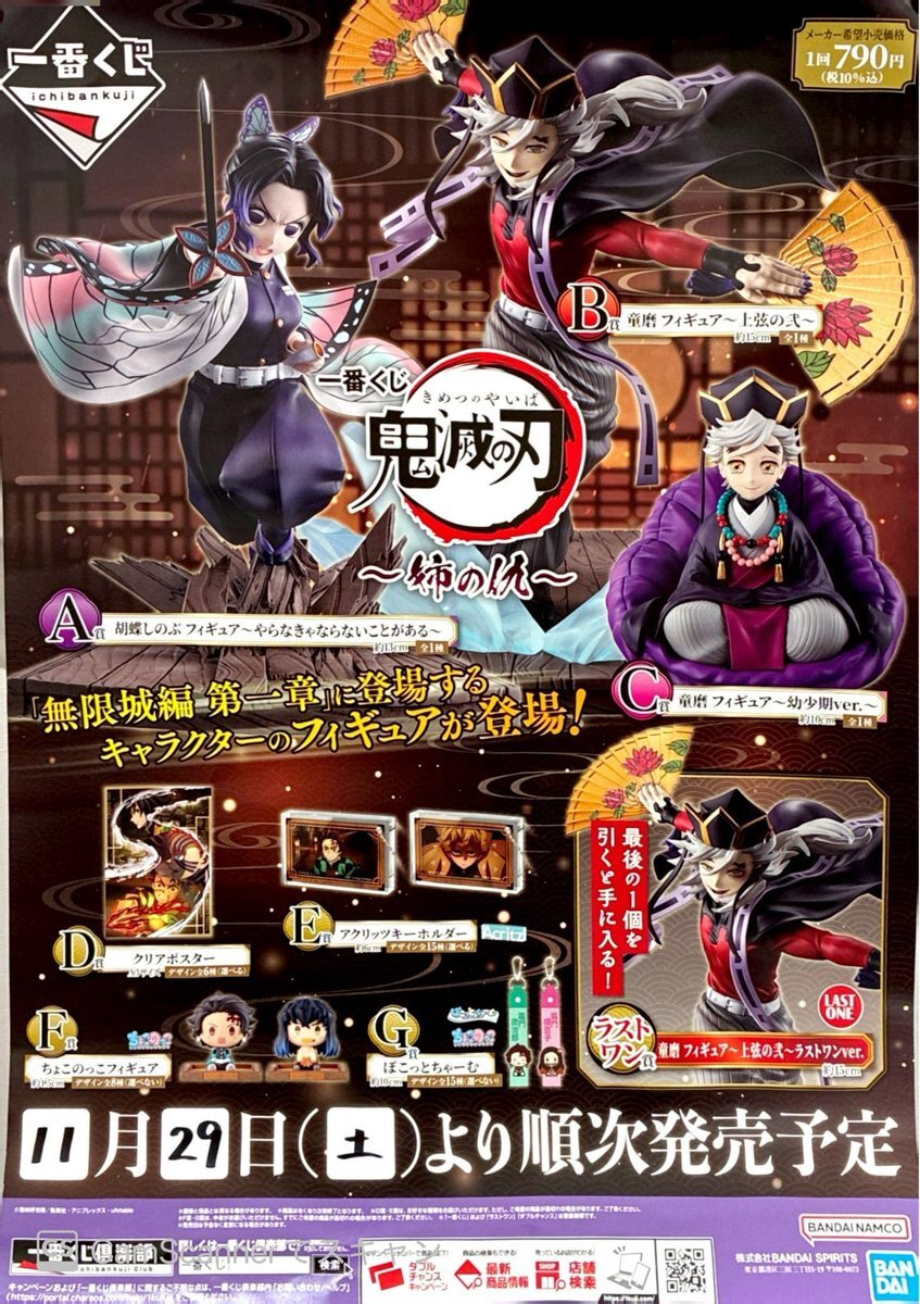 #一番くじ 発売予定情報】 #鬼滅の刃 ~姉の仇~ 2025/11/29(土)朝11:00~ 無限城編から童磨としのぶがフィギュア化です!ちょこのっこもありますし激アツなラインナップですね🔥犬山市周辺で取扱店舗お探しでしたらぜひ #ブックタウン犬山店 でお願いします🦋 pic.x.com/dasHXryjr4 x.com/ichibanKUJI/st…