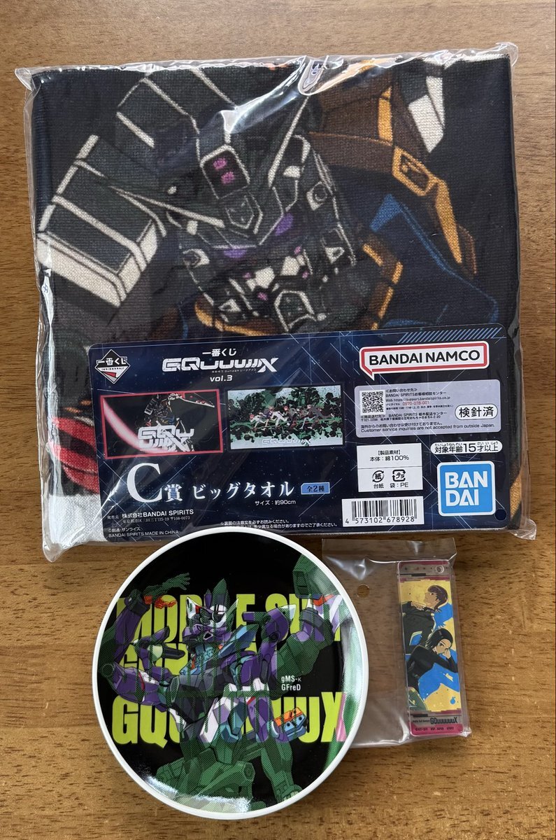 GQuuuuuuXの一番くじを3回引いてみました😊 C賞のビッグタオル…イラストがカッコいい✨ ダンダダンのガチャがあったので回してみました😆 オカルンの顔かなりカッコいいです❣️ #一番くじ #GQuuuuuuX #ダンダダンガチャ pic.x.com/RvXxM8Gpdw