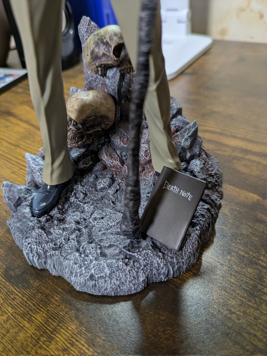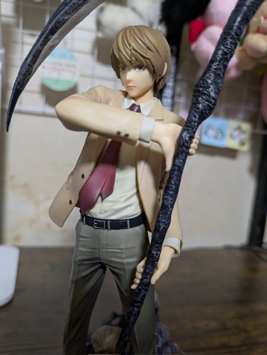 デスノート一番くじで当たった月のフィギュアを開封。 正直な感想はフィギュア本体より、台座や大鎌の方がクオリティ高い笑 パッケージの写真と1番違うのは首の長さかな? #DEATHNOTE #一番くじ pic.x.com/hwPGln35fE