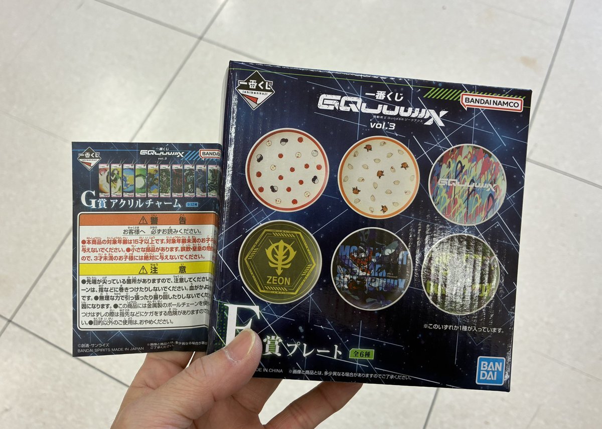 ジークアクスの一番くじ、2回だけ挑戦。 引く前に嫁にE賞とG賞以外ならなんでもイイ!なんて言いながら引いた結果がコレ!泣 #一番くじ #GQuuuuuuX #ジークアクス pic.x.com/bRPPQXGW0v