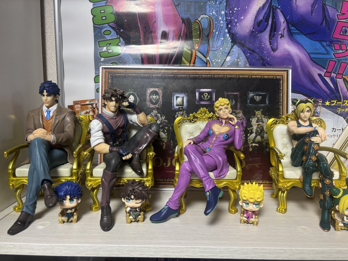 #ジョジョ #一番くじ ジョジョワ一番くじ、ジョナサン、ジョセフ、ジョルノ開封しました! どれもベネッ! 特にジョセフッ!ニヤリ顔の感じも髪の造形もディ•モールトいいぞッ✨✨ 承太郎も仗助も揃える気持ちでジョジョワディスプレイ組みますか!! pic.x.com/mjcQiB1MrN