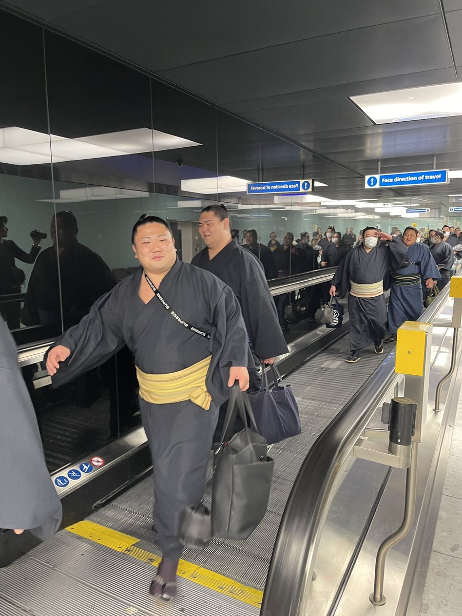 #万葉倶楽部 #豊洲千客万来 #千客万来相撲 開催日に 大相撲ロンドン公演 A班のみなさんがヒースロー空港ご到着✈️ x.com/sumokyokai/sta…