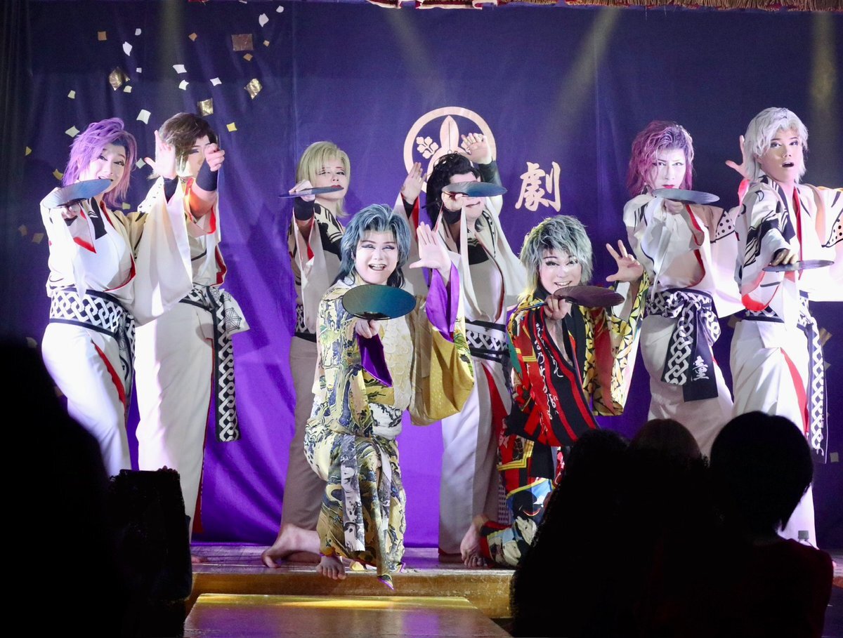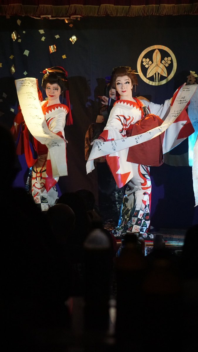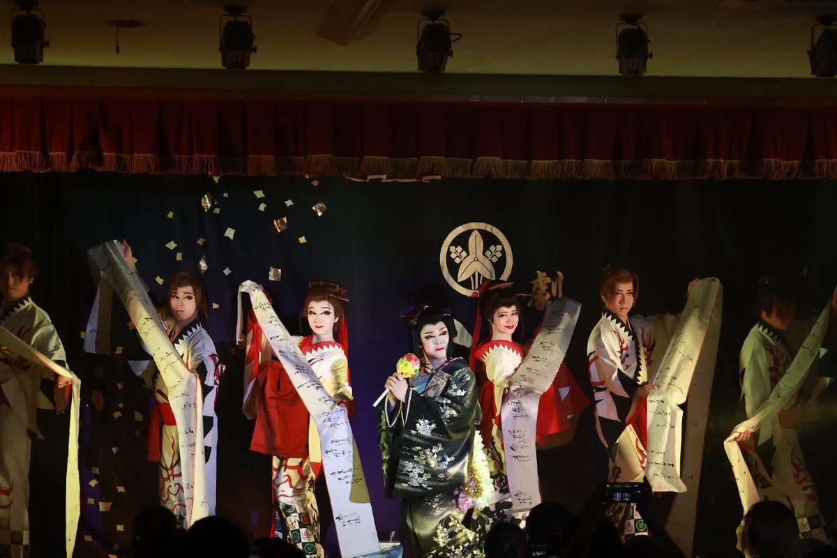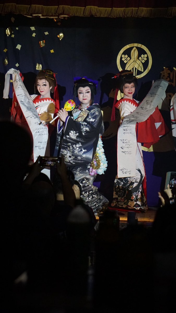 2025/10/05 昼 大入㊗️ 群舞♪夜に駆ける #船生かぶき村 #劇団暁 #三咲暁人 座長 #三咲隼人 花形 #三咲愛羅 花形 #三咲憧 #三咲舞花 いただいたお菓子を活かして群舞🤣 pic.x.com/TT0o03FfX4