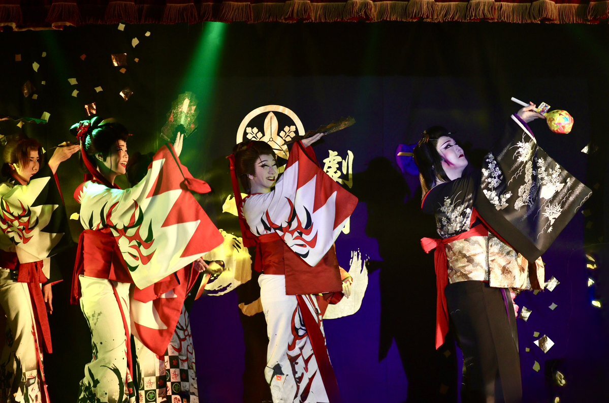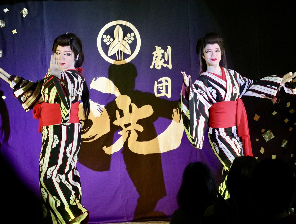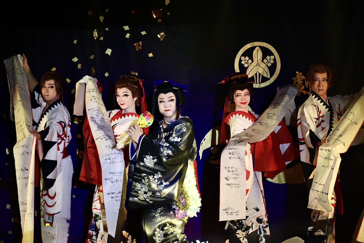 2025/10/05 昼 大入㊗️ 群舞♪夜に駆ける #船生かぶき村 #劇団暁 #三咲暁人 座長 #三咲隼人 花形 #三咲愛羅 花形 #三咲憧 #三咲舞花 いただいたお菓子を活かして群舞🤣 pic.x.com/TT0o03FfX4
