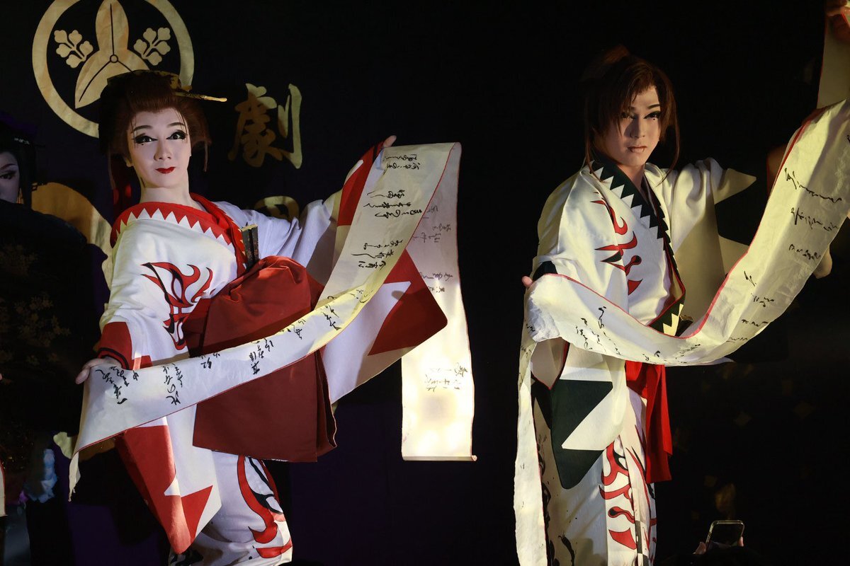 2025/10/11 昼 💐大入り 暁人祭り 三人舞踊🎶 さよならエレジー #三咲楓馬 #三咲良羅 #三咲舞花 #劇団暁 #船生かぶき村 pic.x.com/9i54x64DcE