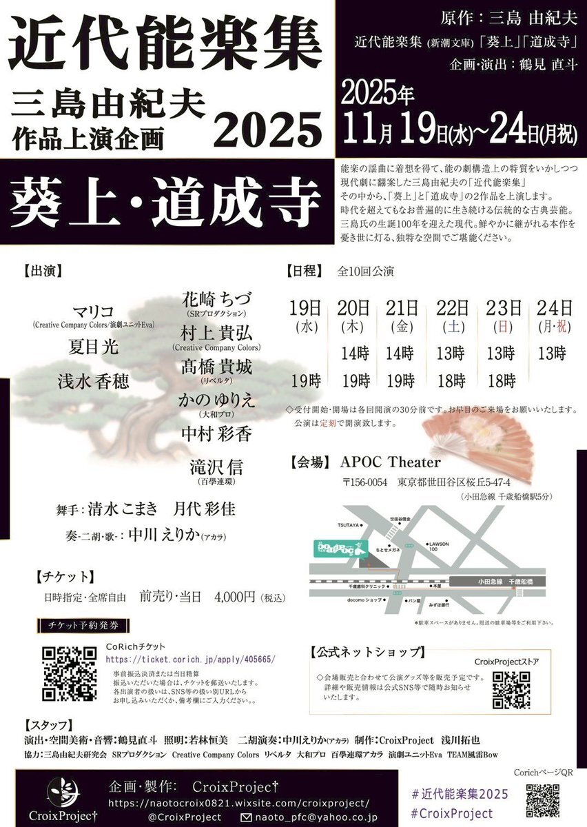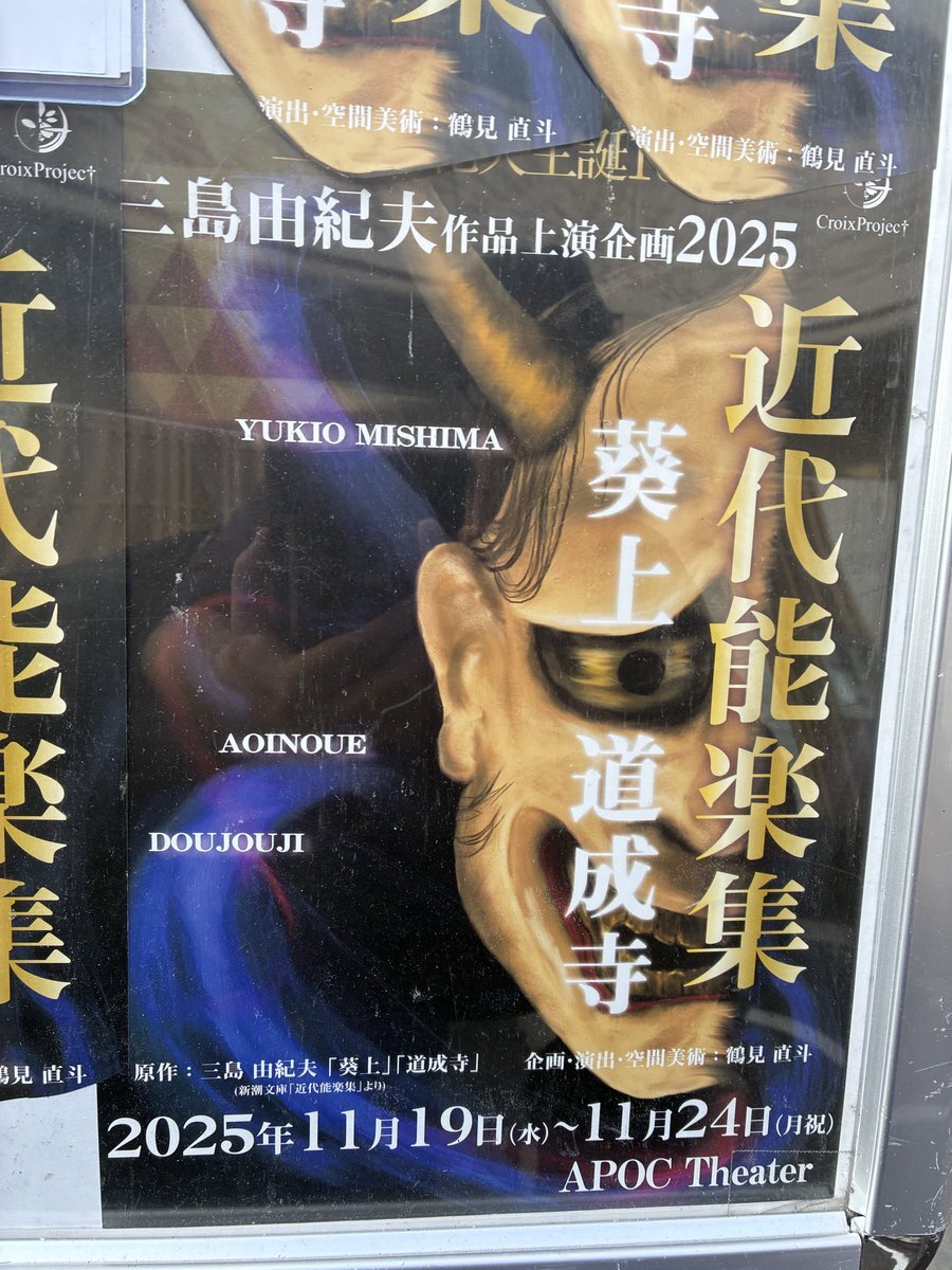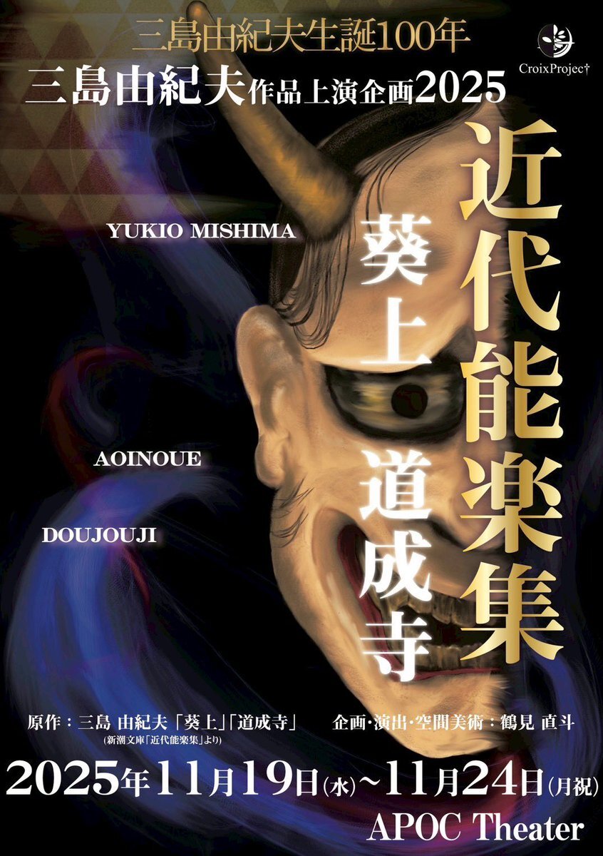 本日、CroixProjec†「近代能楽集 葵上・道成寺」を観劇。 #CroixProjec #近代能楽集 #APOCシアター #三島由紀夫 @CroixProject pic.x.com/RThy835xZx