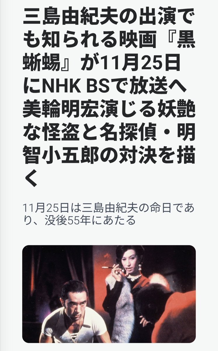 🦎💎#美輪明宏 主演映画「#黒蜥蜴」NHK BSで放送、#三島由紀夫 が特別出演(ステージナタリー) - Yahoo!ニュース news.yahoo.co.jp/articles/536d9…
