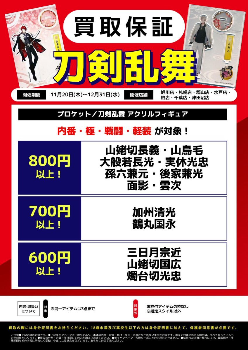 【入荷情報】 #刀剣乱舞 #三日月宗近 コストモ製改訂前 女性用Mサイズ 税込15,950円 ※狩衣用袖留め(金)欠品、色移りや痛み等有 が入荷しました! 改訂前の衣装は【12,000円前後】で買取を行っております! 買取告知はこちら posfie.com/@kbooks_cospre… TEL:03-5979-5711 #kbコスプレ入荷_刀剣乱舞 pic.x.com/fBdxPvAVvc